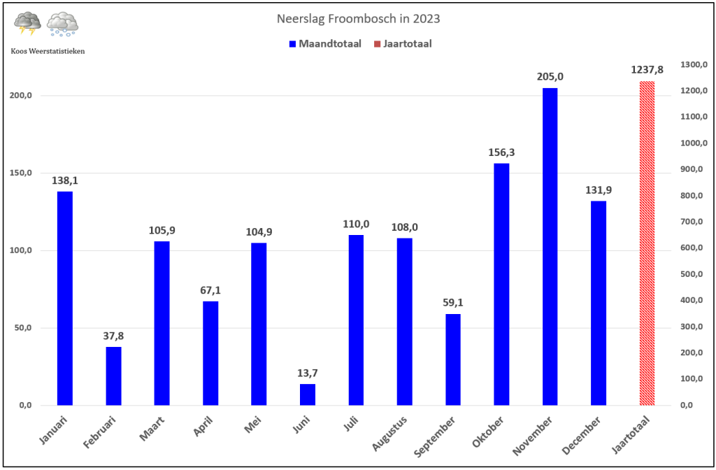 Een gedenkwaardig jaar met ruim 103 mm gemiddeld per maand.