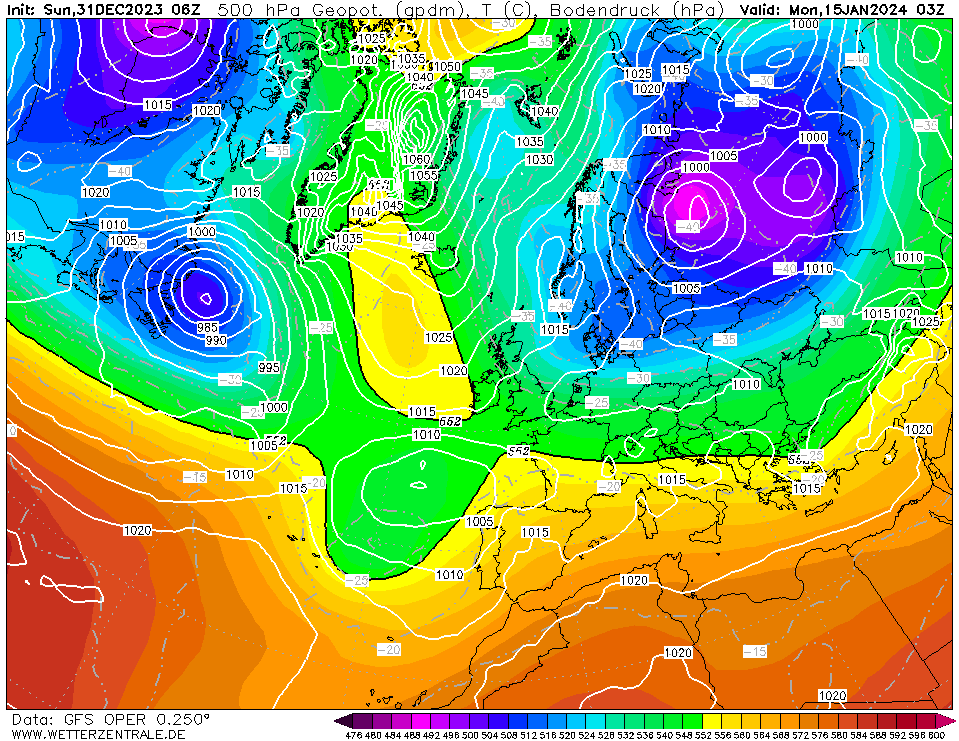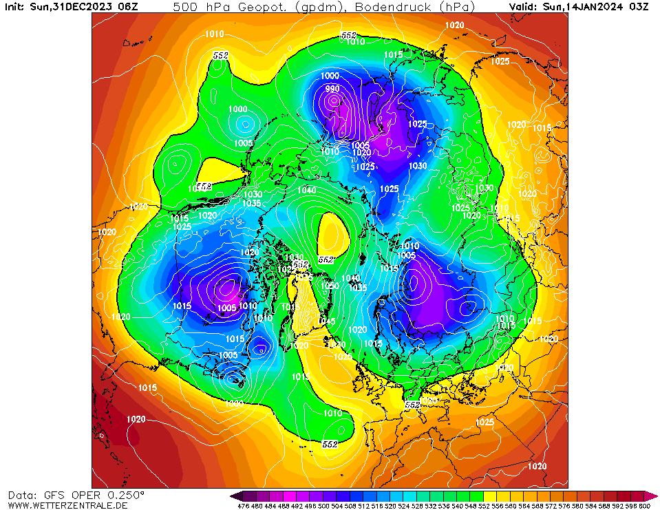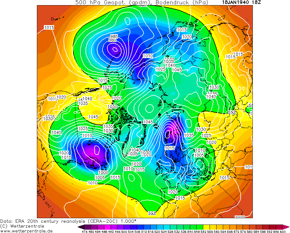 Toen ook 3 aparte vortexen en een sterk Poolhoog. Alleen was het toen wel fors kouder en hadden we een van de koudste januari maanden van de 20e eeuw.