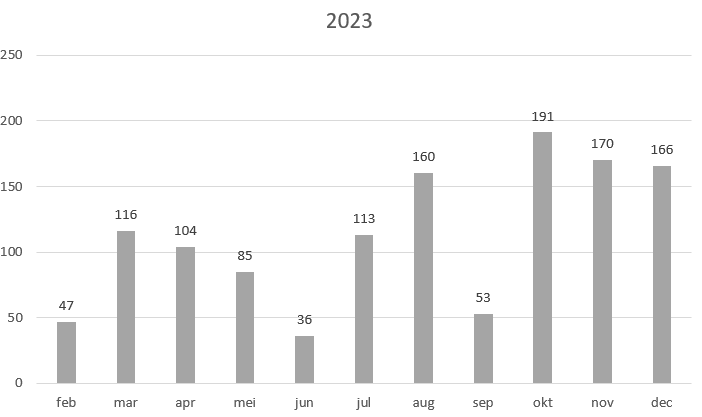 Waarvan 7 maanden > 100 mm waarvan 4 maanden > 150 mm. Hopelijk komt er vandaag nog wat bij.