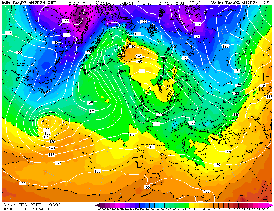 GFS +168 Geen kou op hoogte, wel aan de grond.