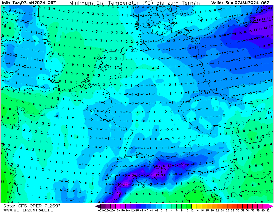 GFS +168 Geen kou op hoogte, wel aan de grond.