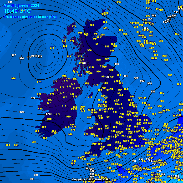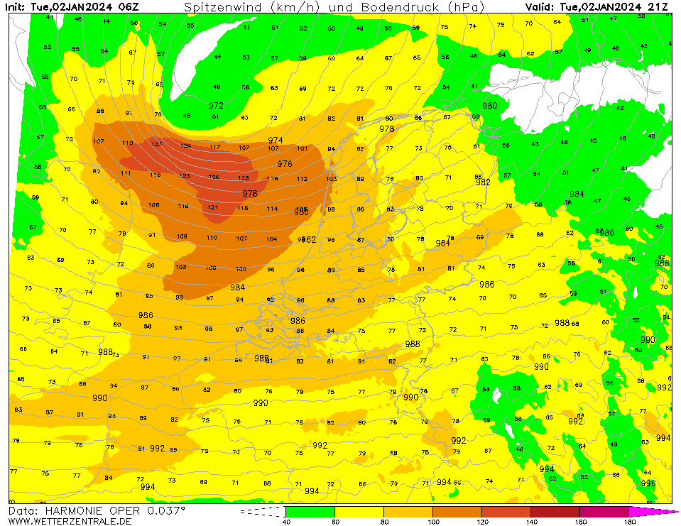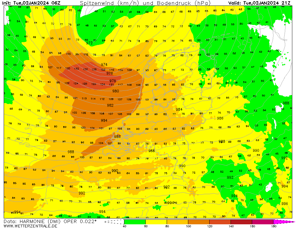 M.u.v. Harmonie zit het windveld een stukje zuidelijker in de uitvoer van de 6Z modellen ten opzichte van eerdere runs. Onderaan ook een kaartje met de actuele luchtdruk boven het VK om 10 UTC.