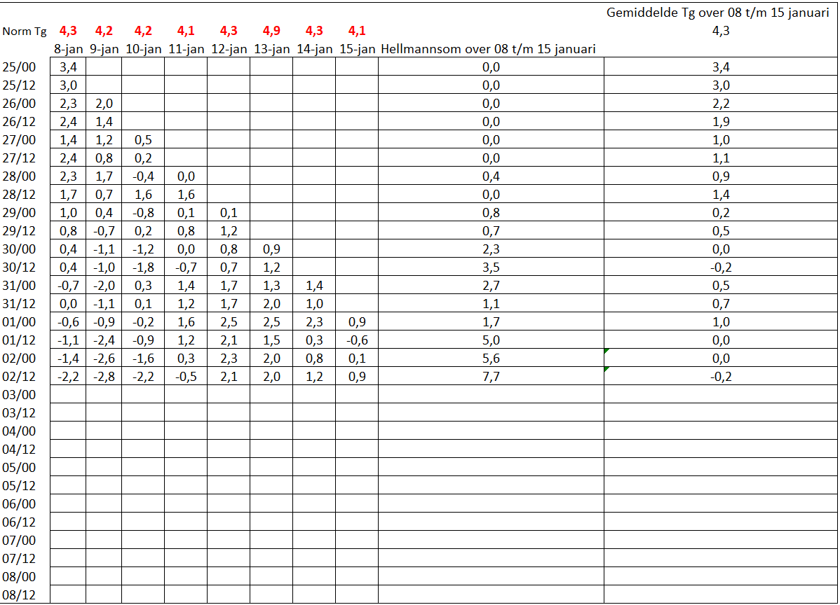 Re: Periode 8 t/m 15 januari. 8 t/m 12 andermaal afgekoeld.Rond 8 Hell