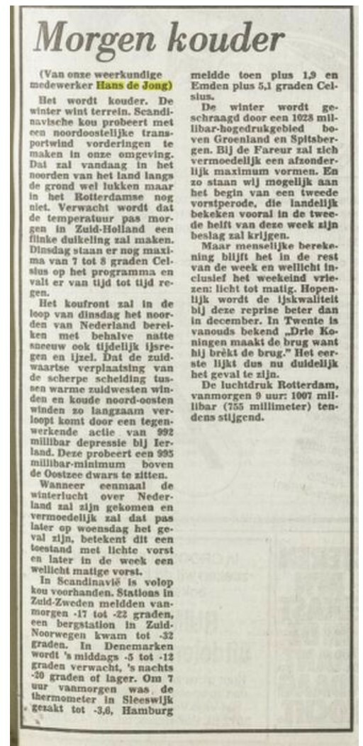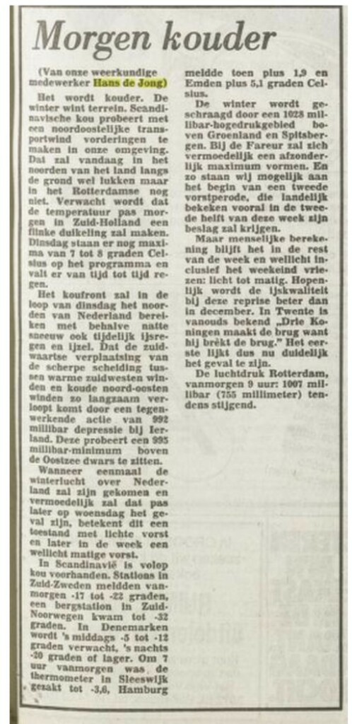 7 januari Hans de Jong. Verwijst naar het verleden, noemt Jan Buisman.