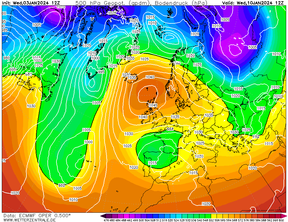 +192: Groenlandbastion bouwt zich op. 1045hPa Schotland.