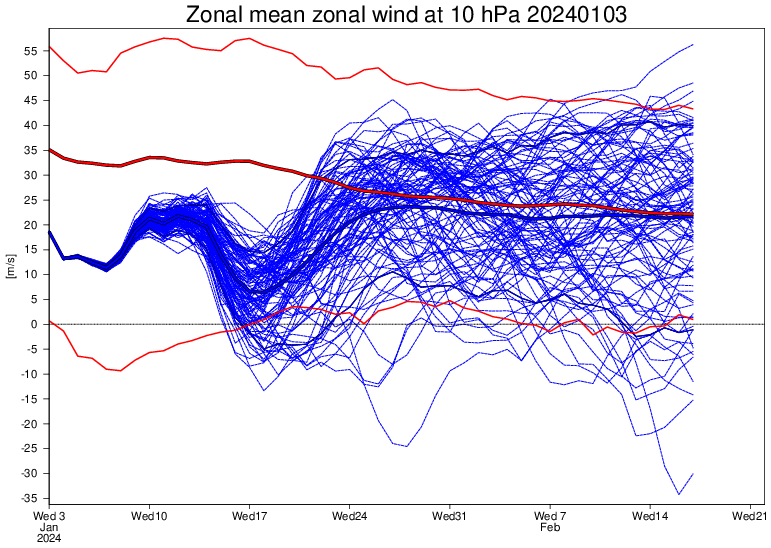 Om te beginnen moet eraan herinnerd worden dat de aanstaande Atlantische blokkade getriggerd wordt door een eerdere Canadian Warming, omstreeks 20 december, zie hiervoor het startbericht van deze draad. Voor de troposferische respons op een stratosferische opwarming staat minimaal één week, veel vaker vraagt dat twee weken; dat zien we nu zich voor onze ogen voltrekken. Dat betekent gelijk dat de komende opwarming zijn uitwerking nog moet gaan krijgen, ergens in het tweede deel van deze maand.