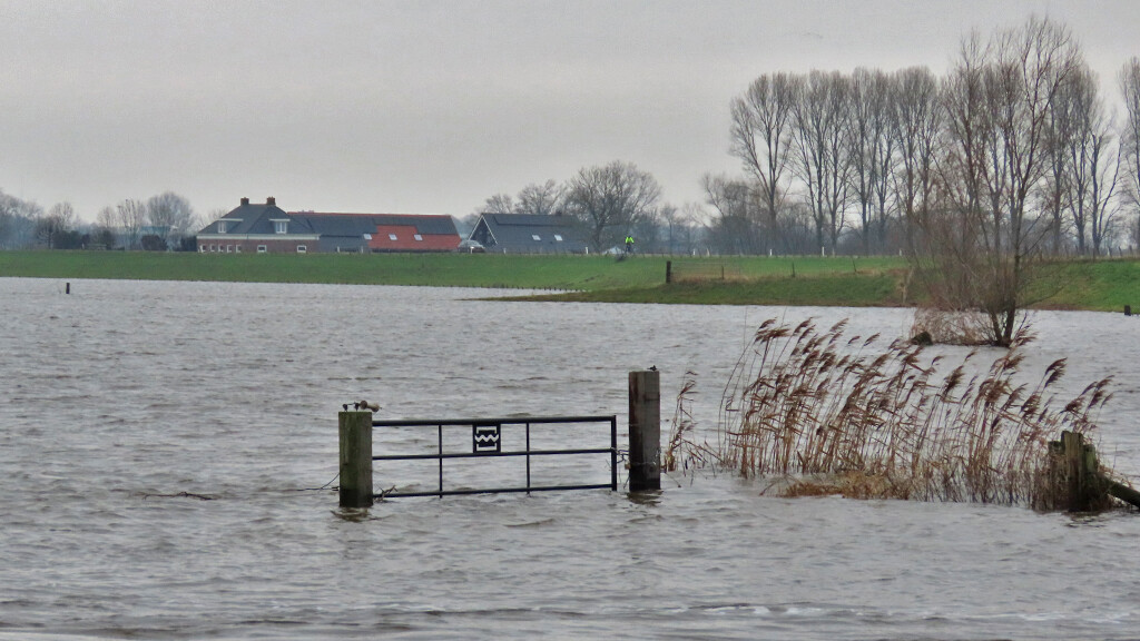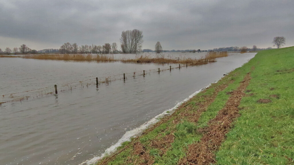 Vanochtend ben ik bij de IJssel geweest ter hoogte van het dorpje Zalk (tussen Kampen en Zwolle). Je kon zien dat het water iets was gezakt, maar nog altijd flink hoog stond.