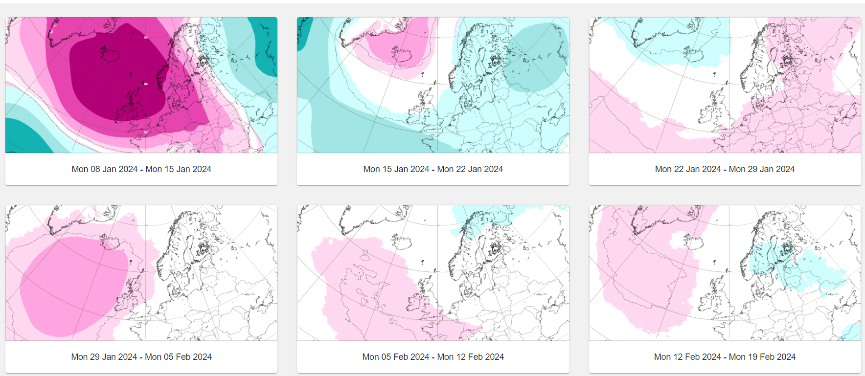 Zo lijkt het te gaan worden. De eerste 14 dagen te koud voor de tijd van het jaar. Daarna rond de normaal in grote lijnen. Het hogedrukbastion ten noordwesten verdwijnt langzamerhand.