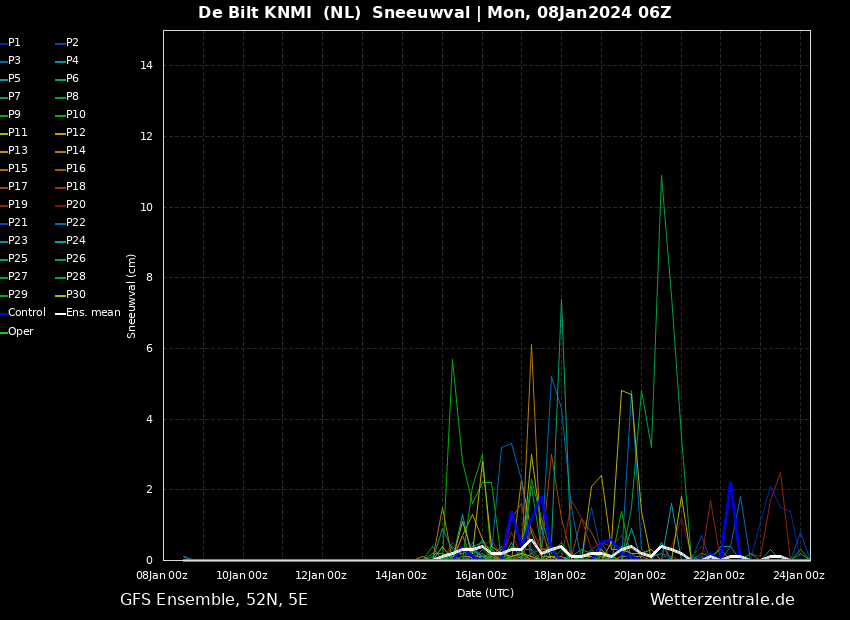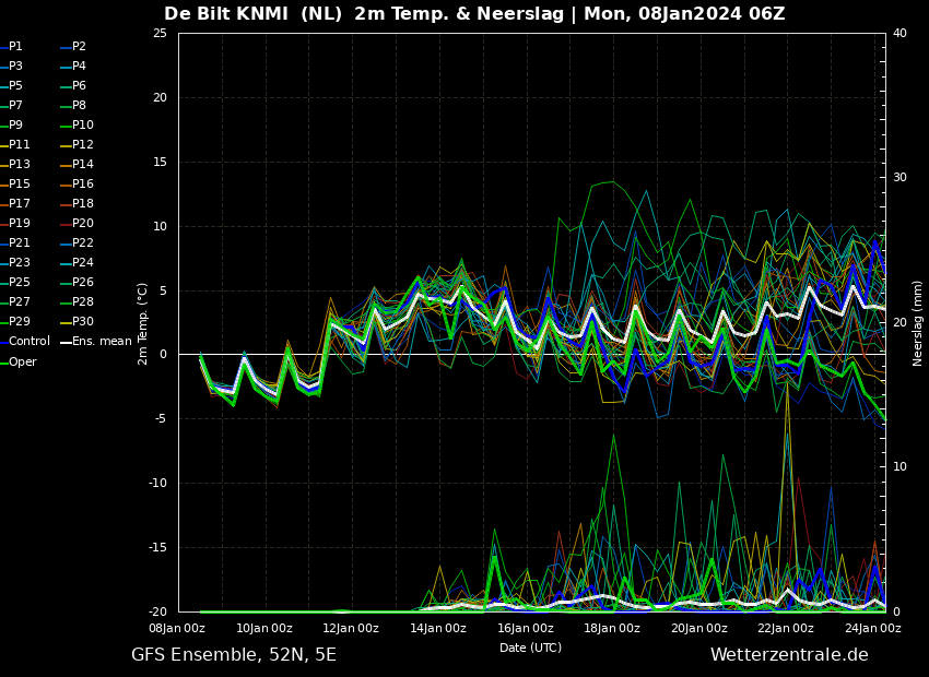 Ensemble GFS0806 (t/m 15-01) - De Bilt (WZ)