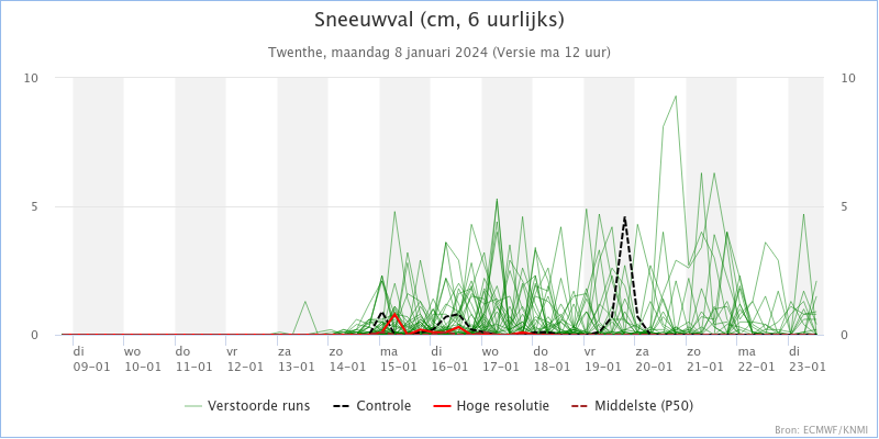 Hieronder de meest recente sneeuwpluim (voor het binnenland, regio zuidoost). De control heeft er zin in, maar verder is het weinig soeps.