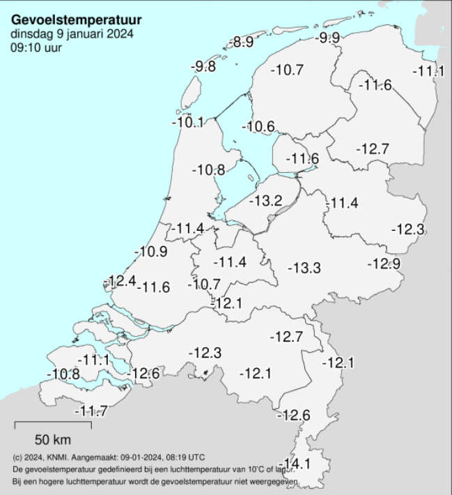 Gevoelstemperatuur is hier boven -10C gebleven, dus valt best mee,