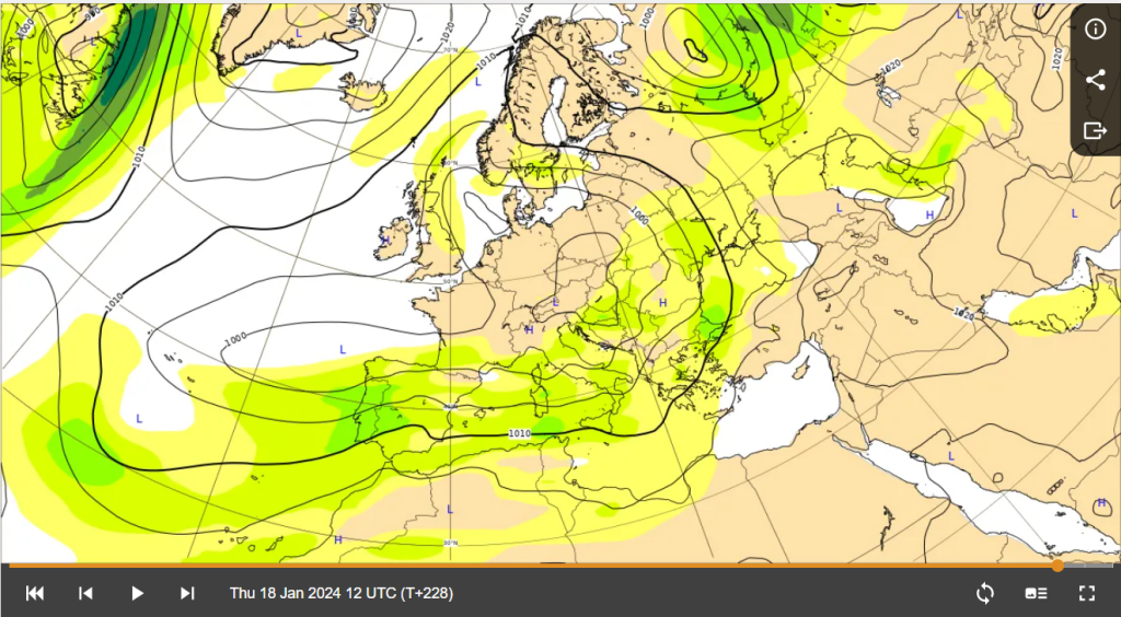 Graphcast laat volgens mij de depressie ten noorden langs trekken