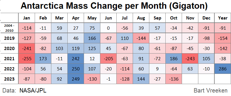 Sneller dan verwacht is er een nieuwe update met gegevens van de ijskap van Antarctica ('Grounded Ice'). De gegevens zijn nu beschikbaar tot en met (half) oktober 2023.