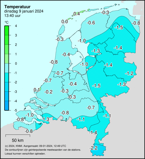 Ook voorspelde maxima van -1 of -2 eindigen vaak net in de + , zeker met zonneschijn, als er bewolking kwam deze middag was het een zekere ijsdag.