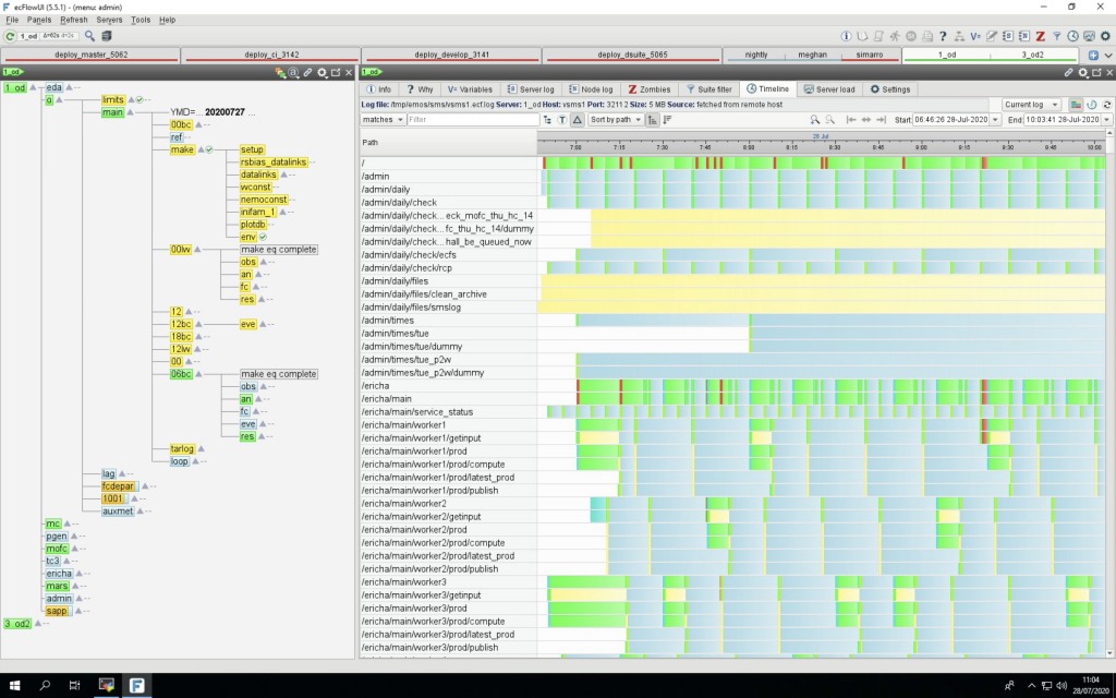 Dat klopt, daarvoor is op dit moment gekozen want wanneer modelsuite 49r1 wordt geoperationaliseerd, in het vierde kwartaal op zijn vroegst, wordt de (technische) configuratie van de HRES de basis voor de onverstoorde modelrun. Je moet het zo zien dat het draaien van een modelrun een complexe aaneenschakeling van processen en bouwstenen is (zie afbeelding voor de beheersoftware die ECMWF gebruikt), die je kan draaien met allerlei parameters. Ook al zijn de parameters momenteel voor de onverstoorde HRES en CTRL run hetzelfde, door kleine verschillen in de exacte opbouw van de procesketen en de volgorde van de bouwstenen heb je toch minieme verschillen. De reden hiervoor is uiteraard historisch. Men wil uiteraard niet onnodig computerkracht verspillen en twee identieke runs (qua waarde) draaien is weinig zinvol.
