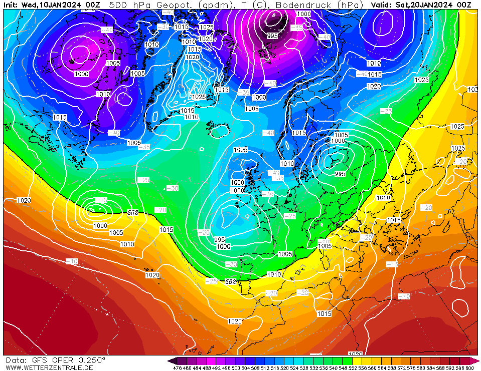 De vorming van hogedruk boven Scandinavie in de loop van 3e decade zit ongeveer 3 dagen af en toe in de modellen, mn GFS.