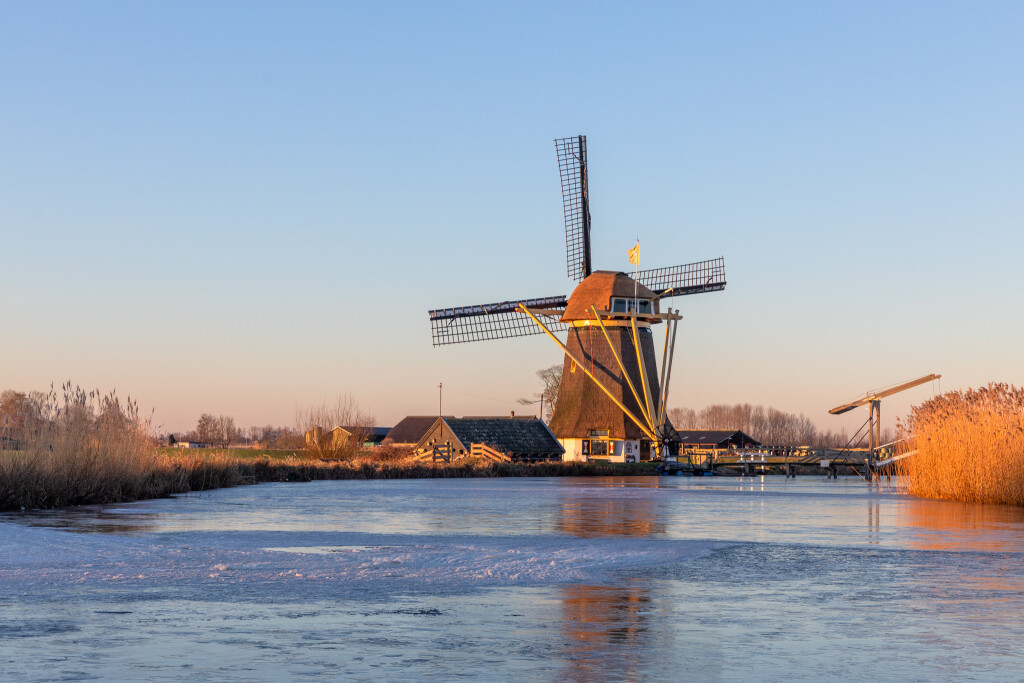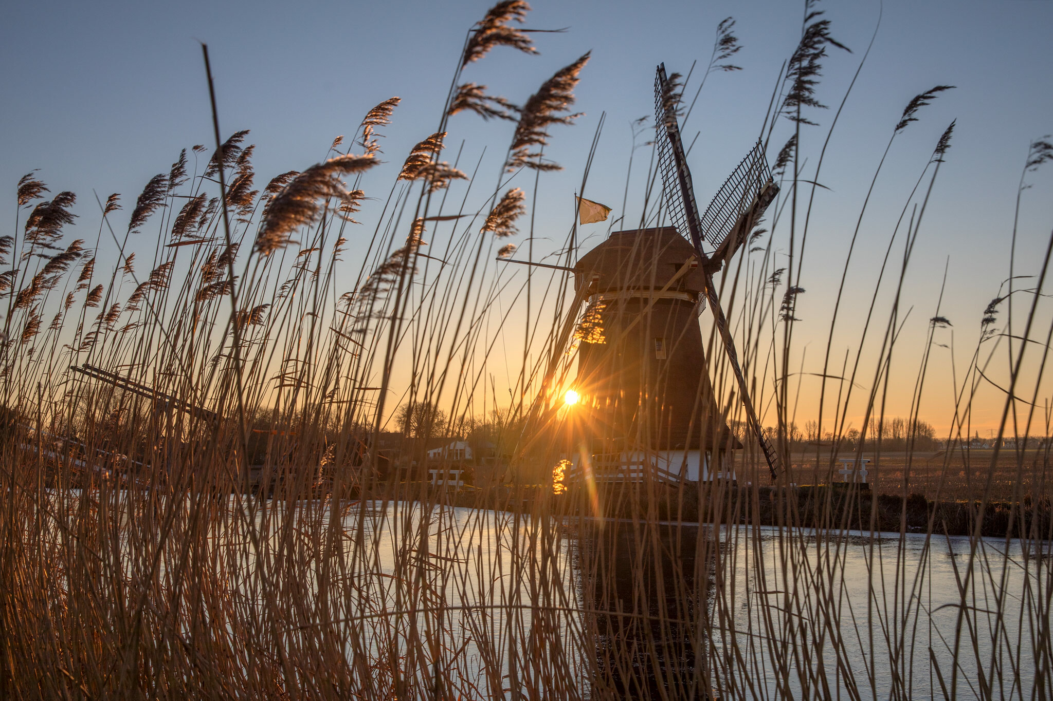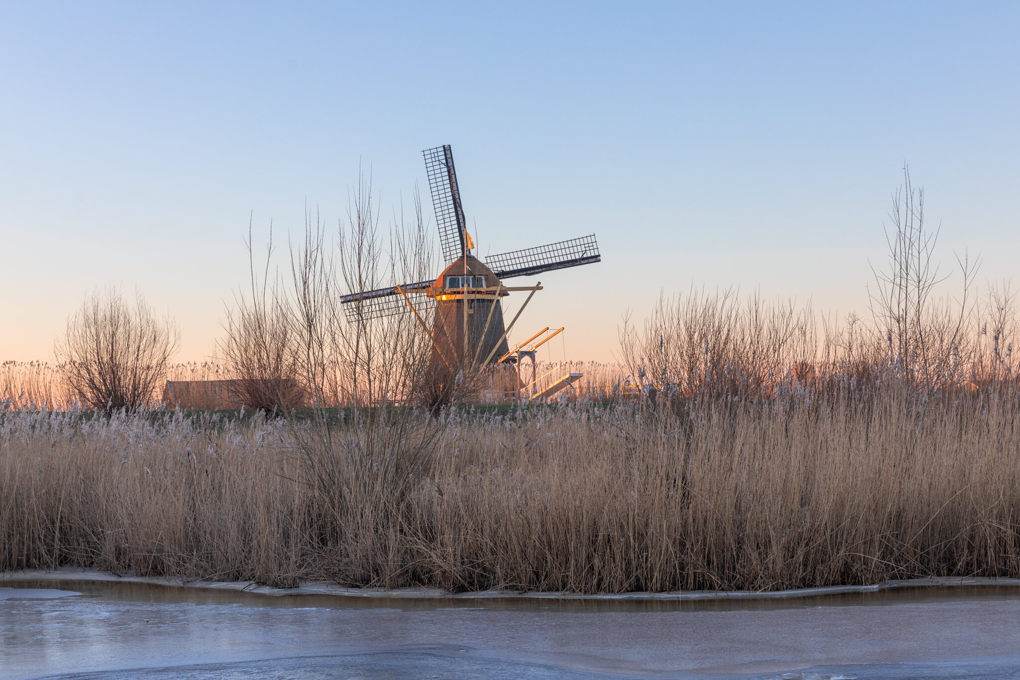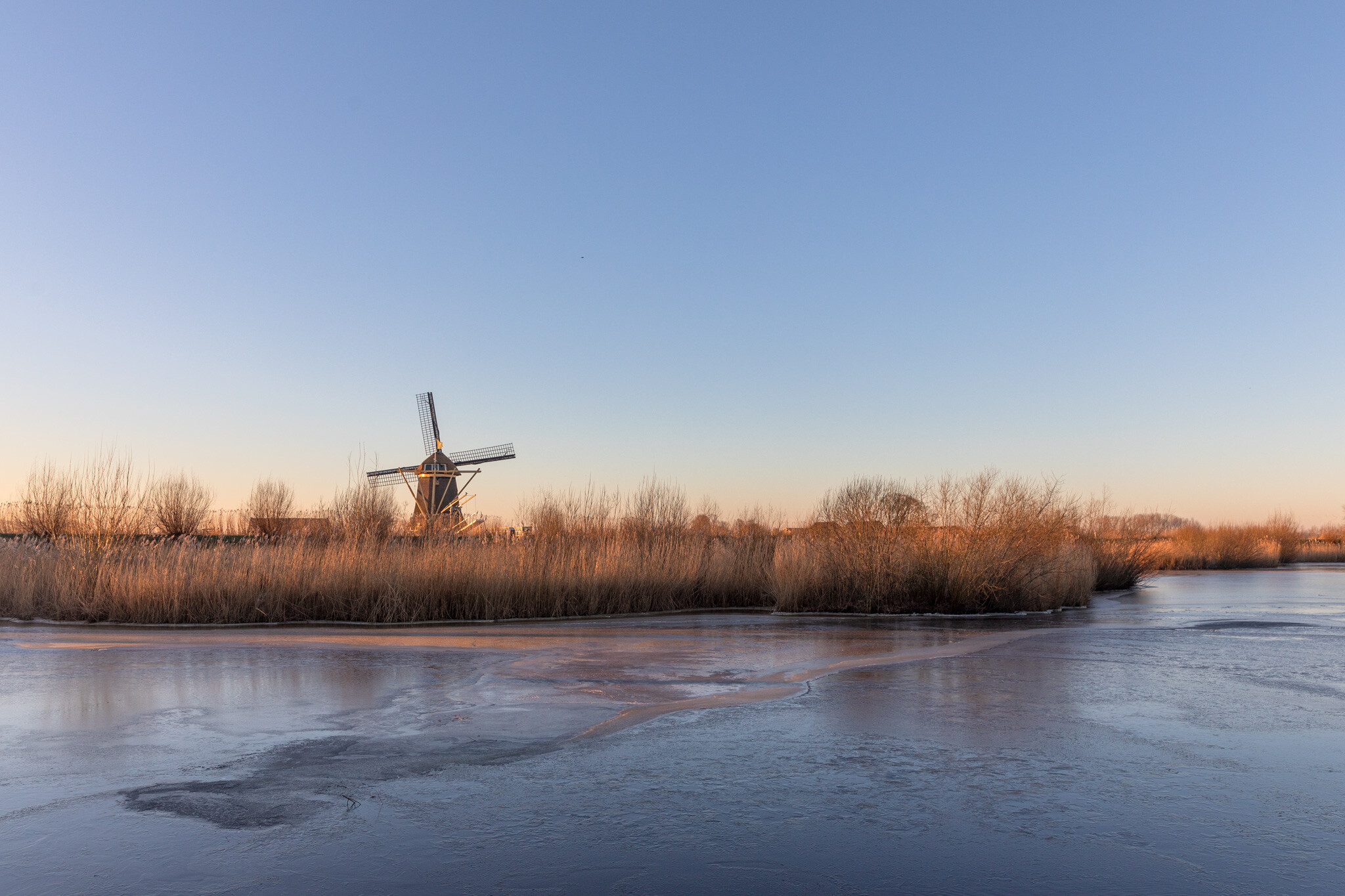 Het riviertje de Angstel is voor een groot deel dichtgevroren. Ik ben even gaan kijken en fotograferen bij één van mijn favoriete molens in de buurt.