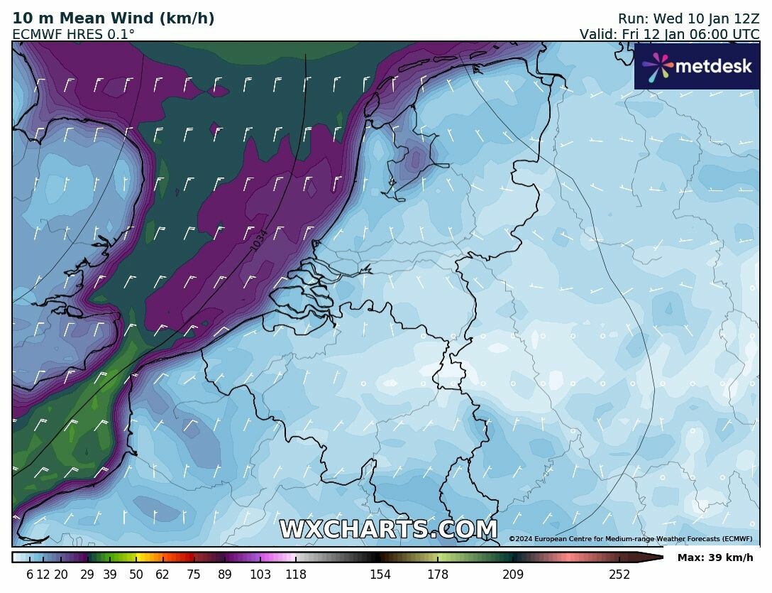 Op 48 uur een sterk hoog ten westen. Bij ons een zwakke noord/noordwestelijke stroming met redelijk normale temperaturen voor de tijd van het jaar