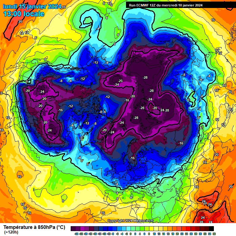 120 hr. Bovenluchten koelen verder af. Buien meer en meer winters