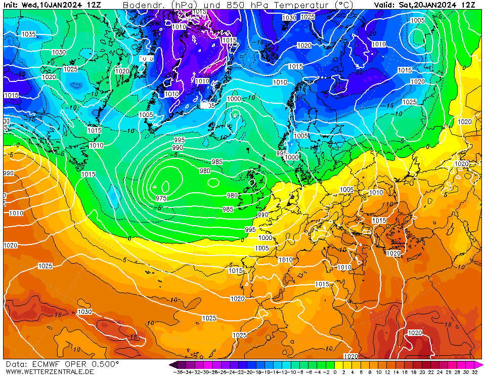 Op 96 uur hoog ten zuiden van Groenland. Laag ten NO-en. Guur
