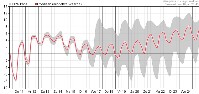 Gemiddelde kruipt zelfs naar 10 graden op het eind. Ja het kan alle kanten op maar het ligt zeer voor de hand dat het hard de VnV kant op gaat na morgen. En wie zit daar nu nog op te wachten? Of flink winters of lenteachtig maar alstublieft niet weer die akelige zogenaamd gulden middenweg. Helaas weten we wel beter in dit klimaat. Vleesch noch Visch kan nog maanden de scepter zwaaien.