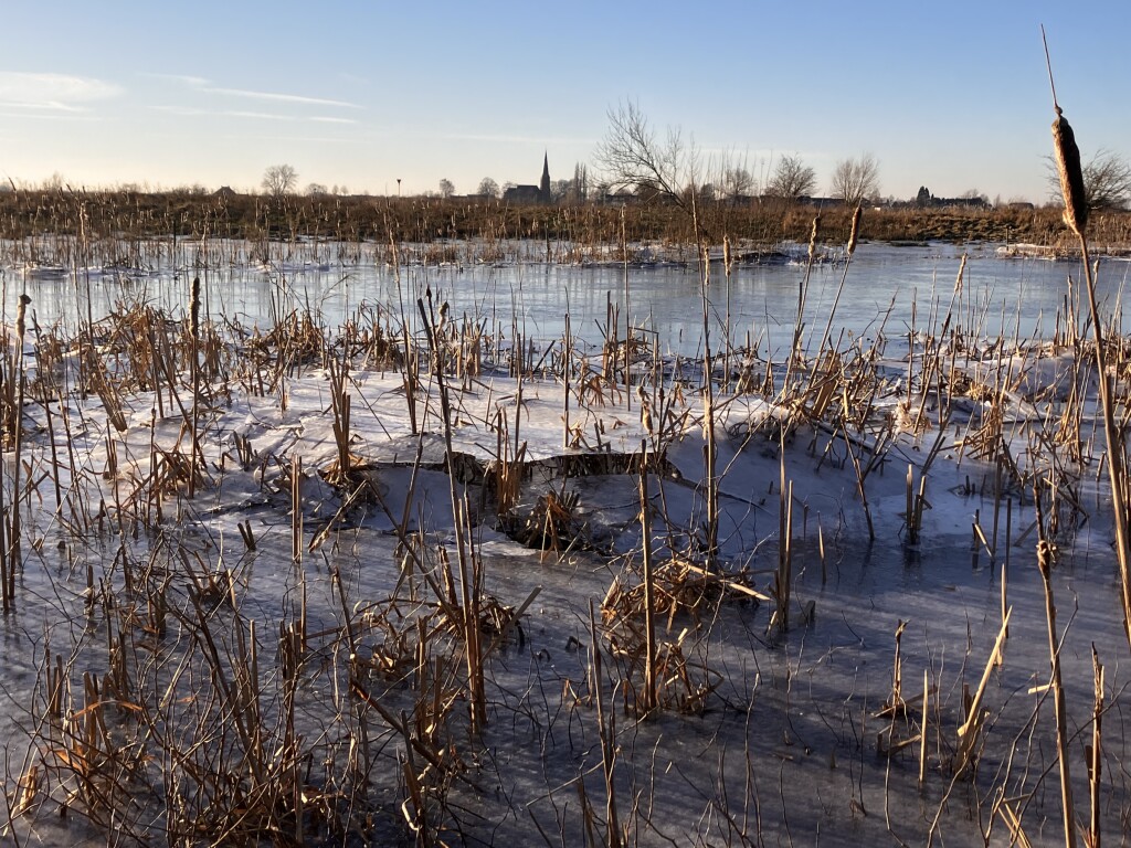 Wat een fijne winterdagen! In Ameide werd op een deel uiterwaard geschaatst dat maandag met schuimkoppen op de golven nog open lag. Helaas kon ik zelf de ijzers niet meer onderbinden vanwege invallende duisternis.