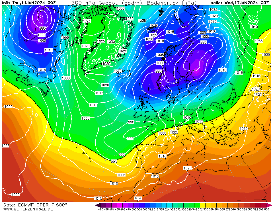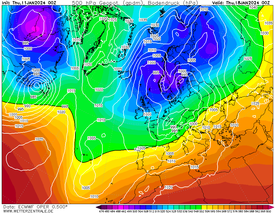 Ook hier de oceaan veel beter geblokkeerd t.o.v. gisteravond met voor ons kans op een sneeuw, nu wel wat zuidelijker.