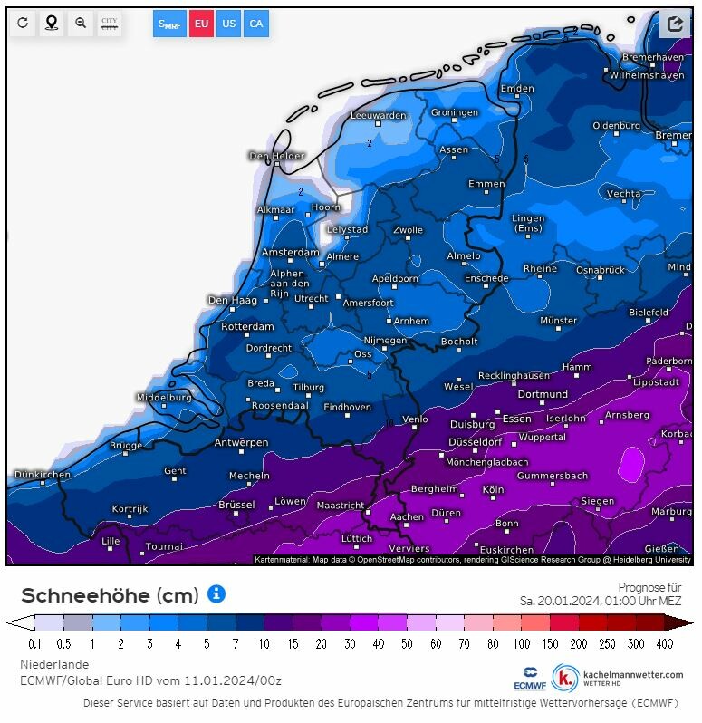 Sneeuwhoogte ECMWF00Z:
