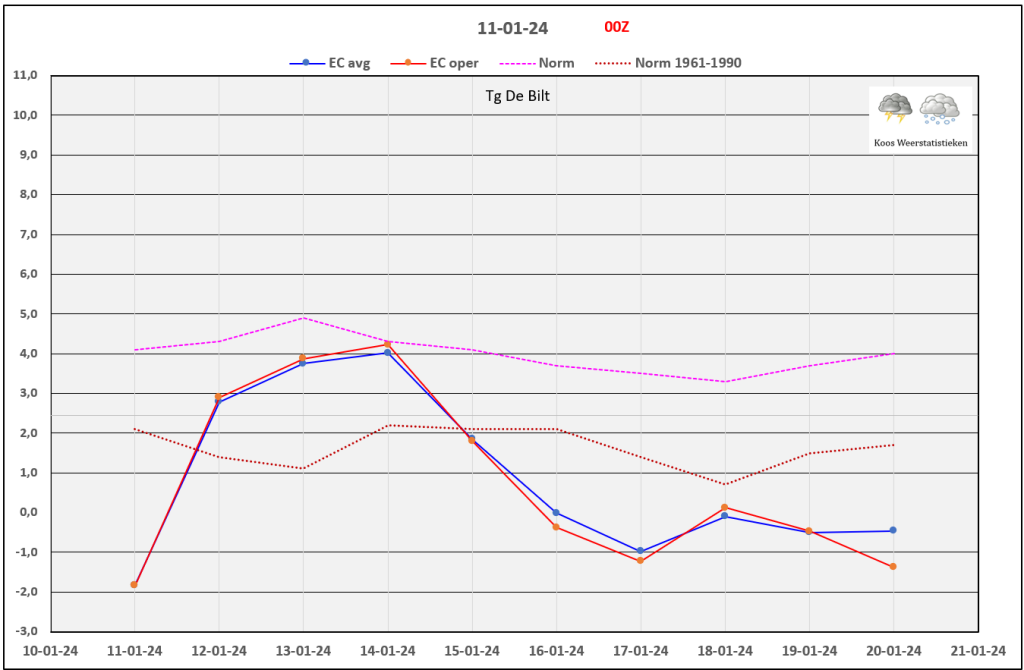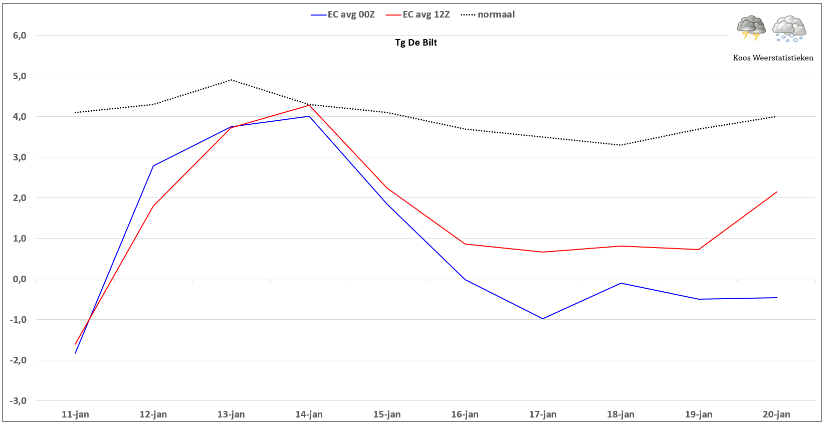 Eerst temperatuur rond normaal, dan kwakkelweer en dan zachter   ( 1055)
