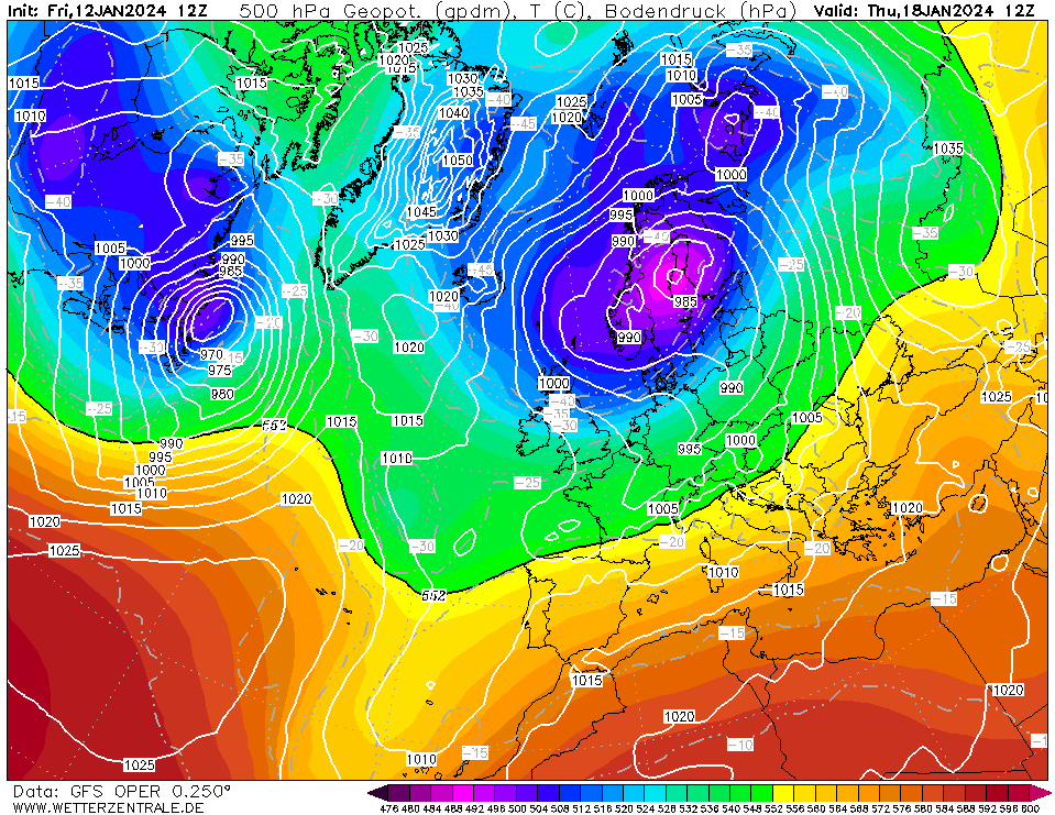 Blokkade? Ja nou ergens helemaal in het hoge noorden met steenkoud hoog. WA? Ja, ergens ten westen van Groenland. Een PV vanaf Scandinavië tot over de Benelux. De vorm, de richting van de PV is bijzonder. Lente weer in Oost Europa. Iets wat we afgelopen jaren juist bij ons konden meemaken. Toch de basis hogedruk boven zuid Europa met daar droge condities. Azoor ver terug getrokken. Mocht dit nou eens een trend worden komende jaren. Lijkt toch wel op kouder dan normaal met lange adem.