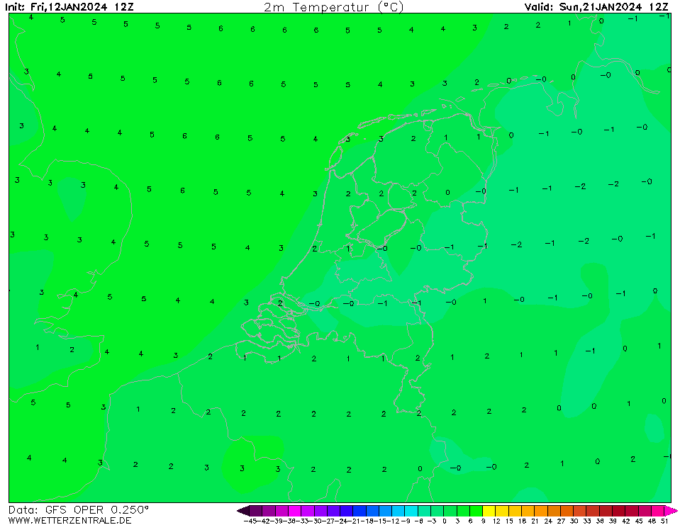 Gezamenlijke GFS Opers zaten vandaag 0,1°C te laag - De Bilt