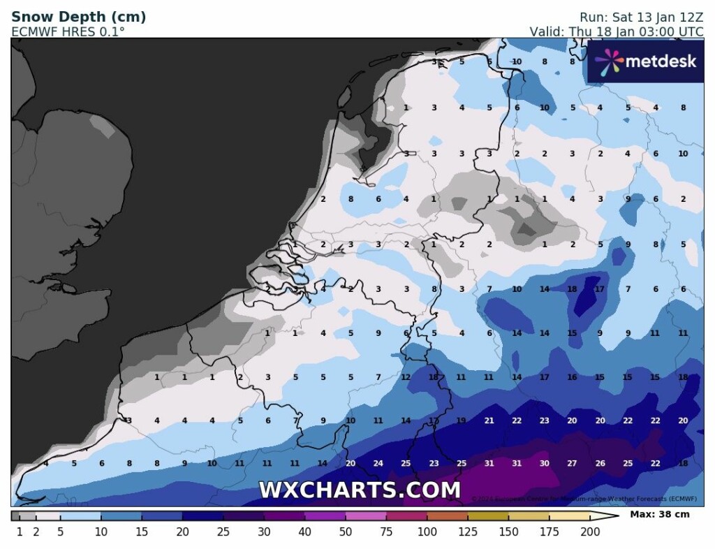 Een deel is nog van maandag en is niet het sneeuwdek maar 5 cm moet er donderdagochtend wel kunnen liggen hier zo lijkt het.