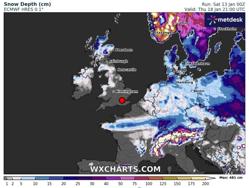 Sneeuw zit noordelijker en wordt intensiever berekend