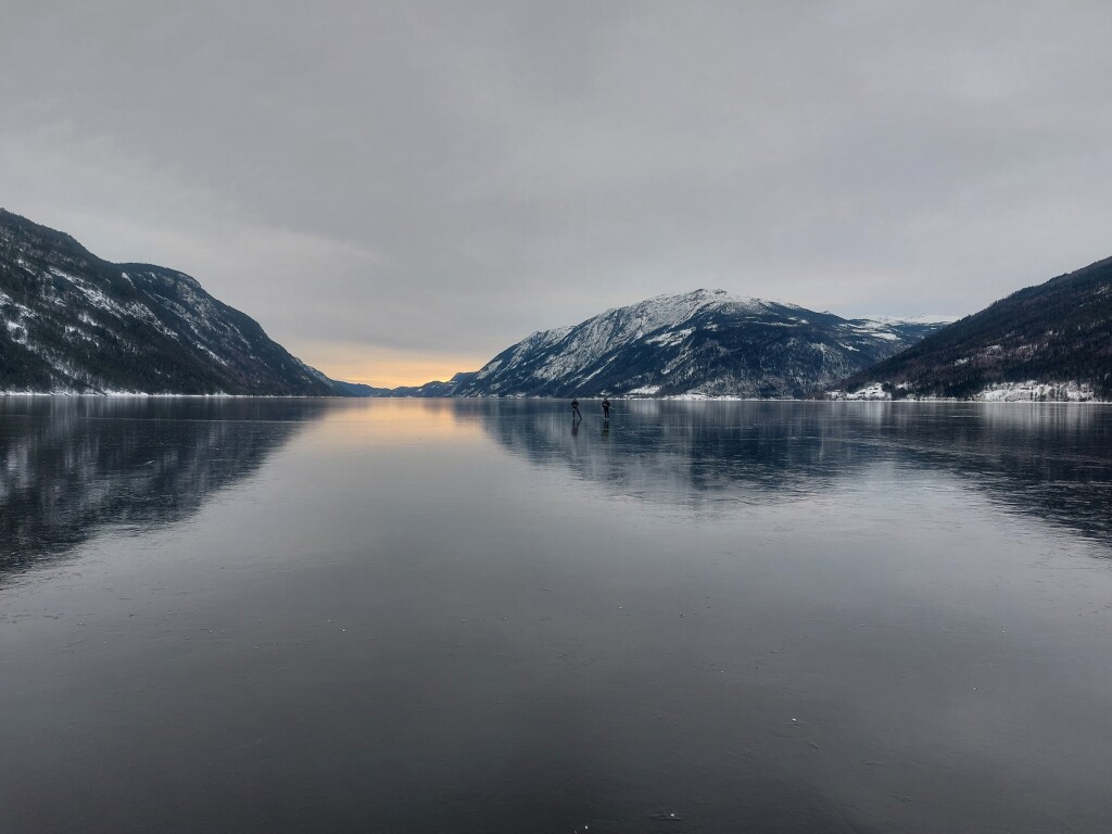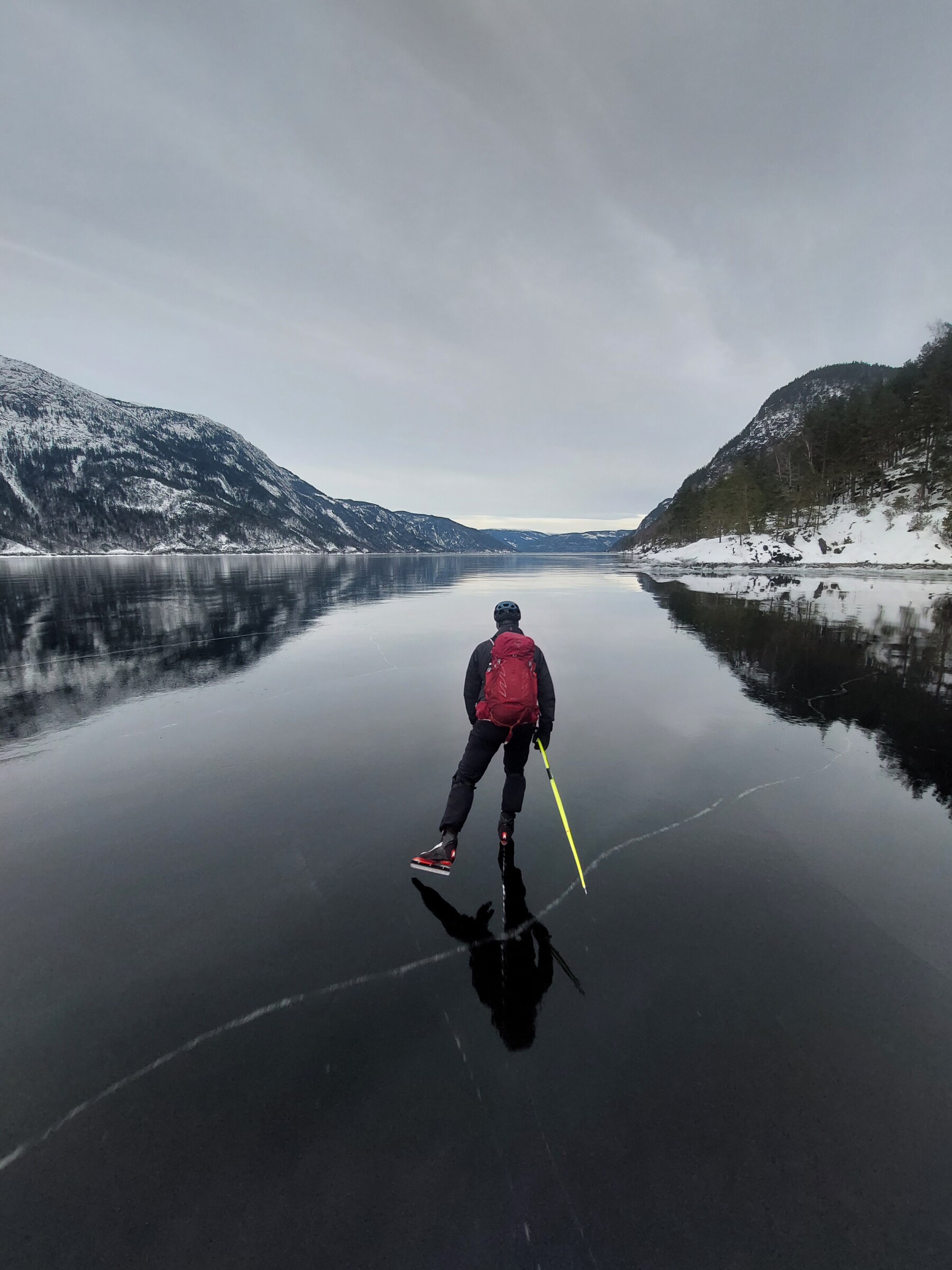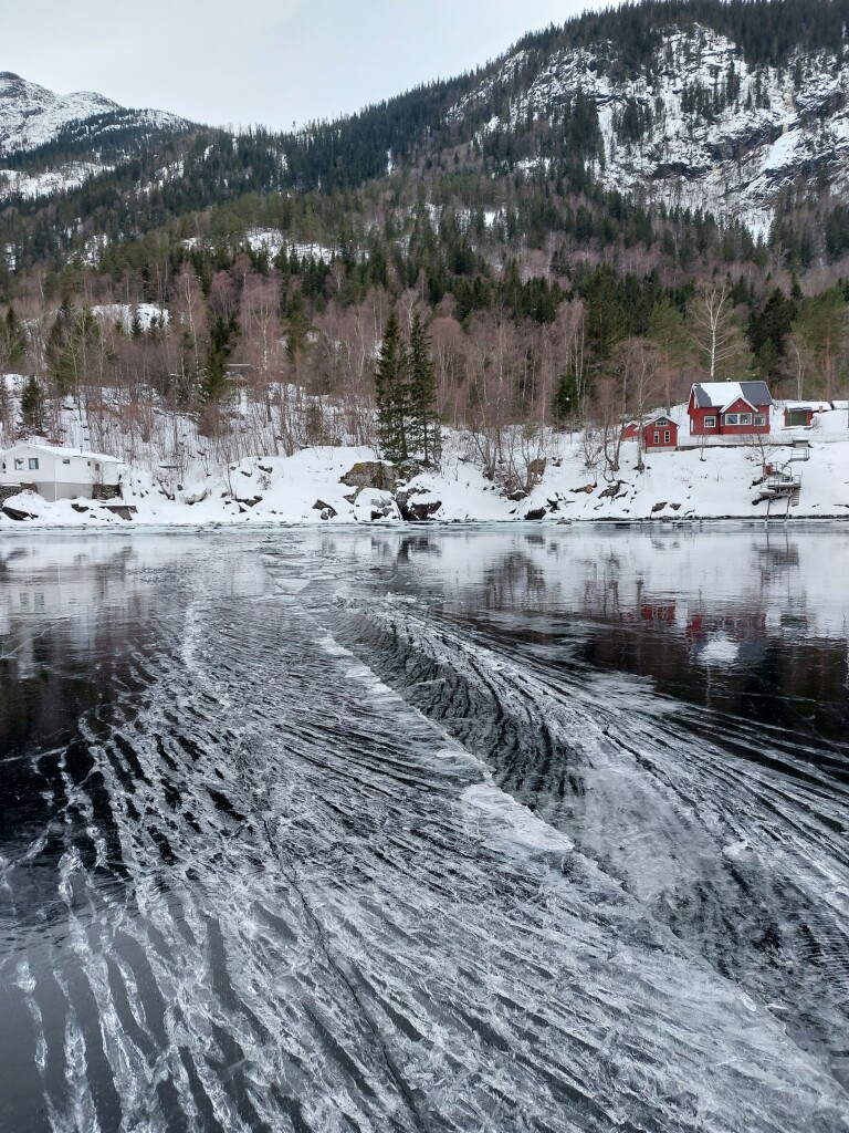 Vrijdag was een van de hoogtepunten van mijn schaatspalmares tot nu toe. Het was namelijk mogelijk om de hele lengte van Tinnsjå te schaatsen (een retourtje is 85km). Op het diepste punt is het meer 460m diep en is daarmee het op twee na diepste meer van Noorwegen en Europa. Op 430m diepte oigt trouwens de veerpont Hydro die in 1944 tot zinken is gebracht door Noorse verzetsstrijders. De Duitsers gebruikte het schip om zwaar water (deuterium) te transporteren.