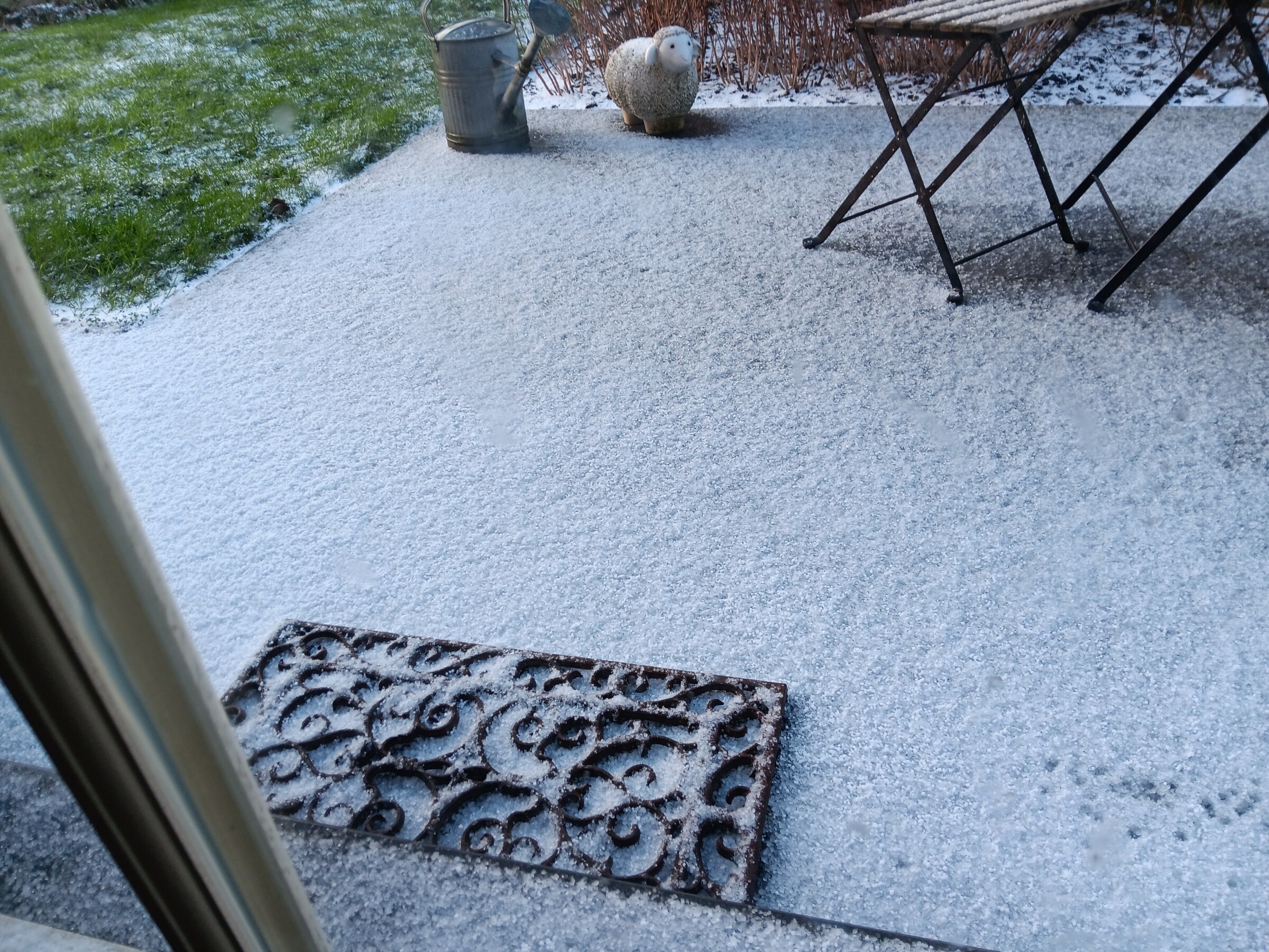 Toch blij met de kleine sneeuwbuien deze middag. Eentje rond 15u was wat heviger en leverde toch een dekje op van korrelsneeuw.