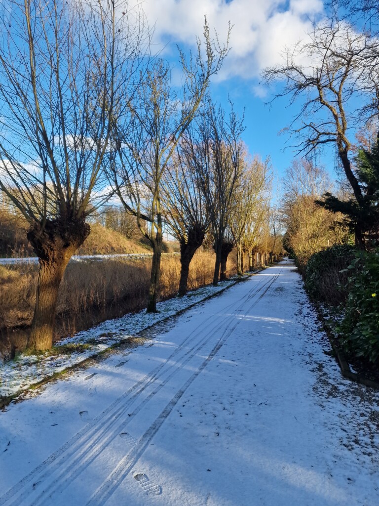 Hier vanochtend optocht van sneeuwbuien, nu opgeklaard.