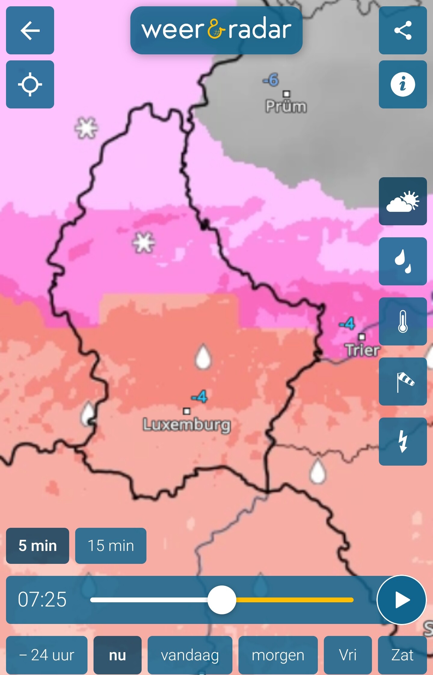 Volgens de radar de zuidelijke helft regen bij 4 graden onder nul. Dit gaat hele grote impact hebben op de infrastructuur en samenleving vandaag.