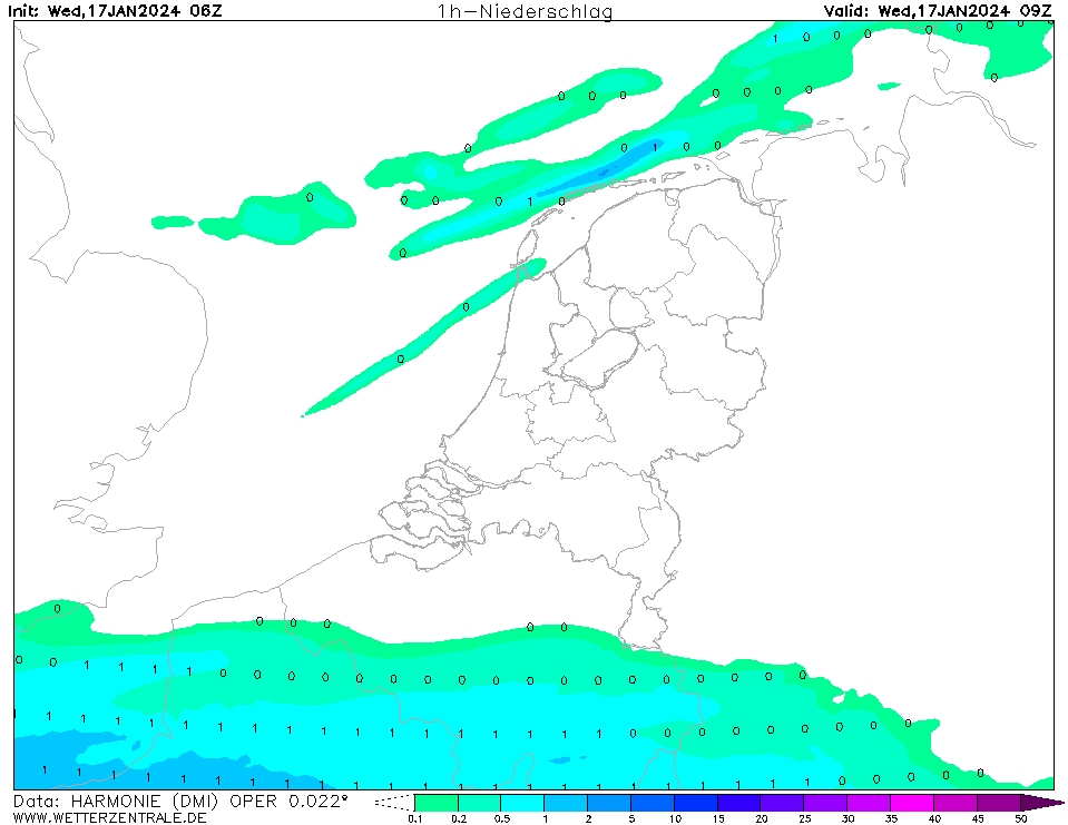 Wat mij opviel bij EC00, neerslag vrij noordelijk