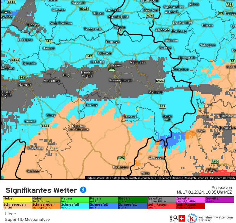 Het is daar nu nog vrijwel droog, en wat er valt is eerst nog lichte sneeuw. In de Elzas is het mogelijk wel erger dan verwacht, als je de neerslagbeelden ziet.
