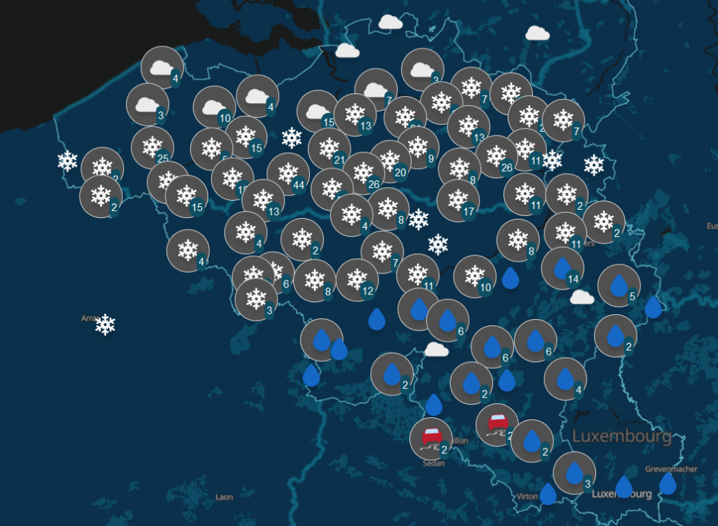 * (aanvriezende) regen en ijzel ten zuiden van deze lijn in Wallonië