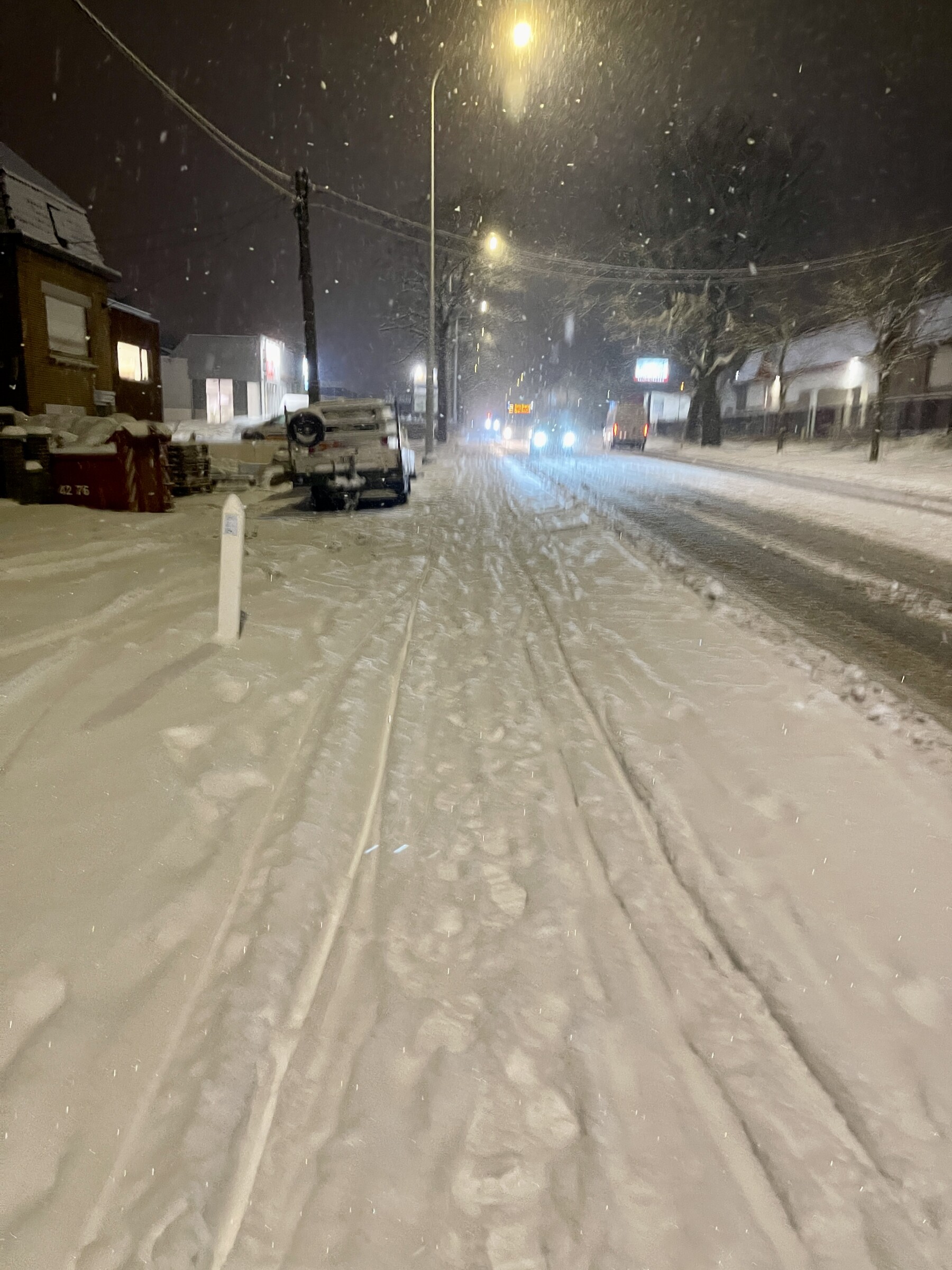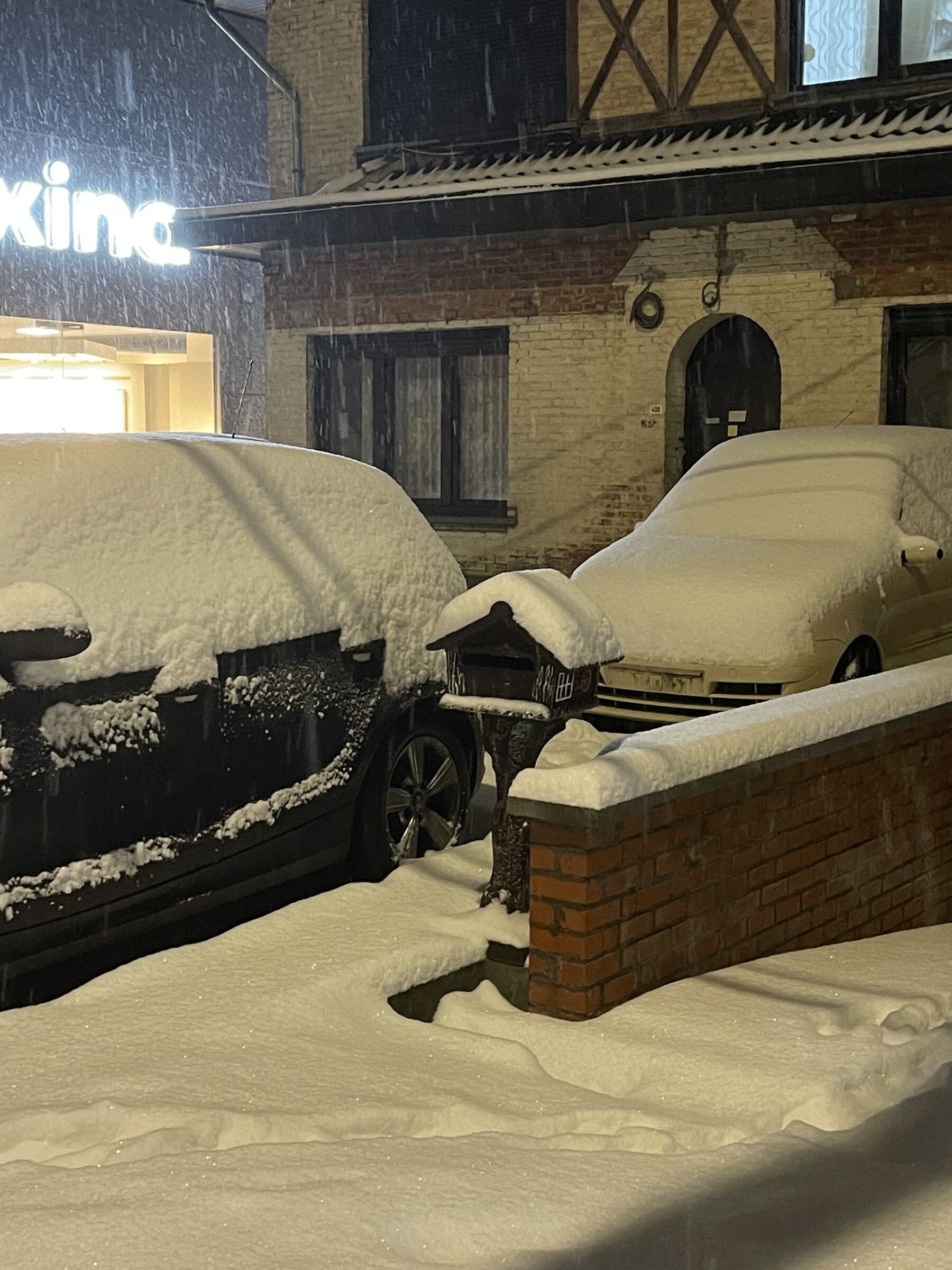 Geen meetlat bij maar ik vermoed toch dat we aan de tien zijn geraakt. En het sneeuwt nog gestaag door. Even een wandelingetje maken in buurgemeente Bierbeek nu.