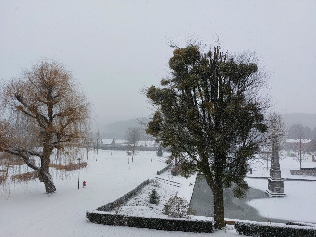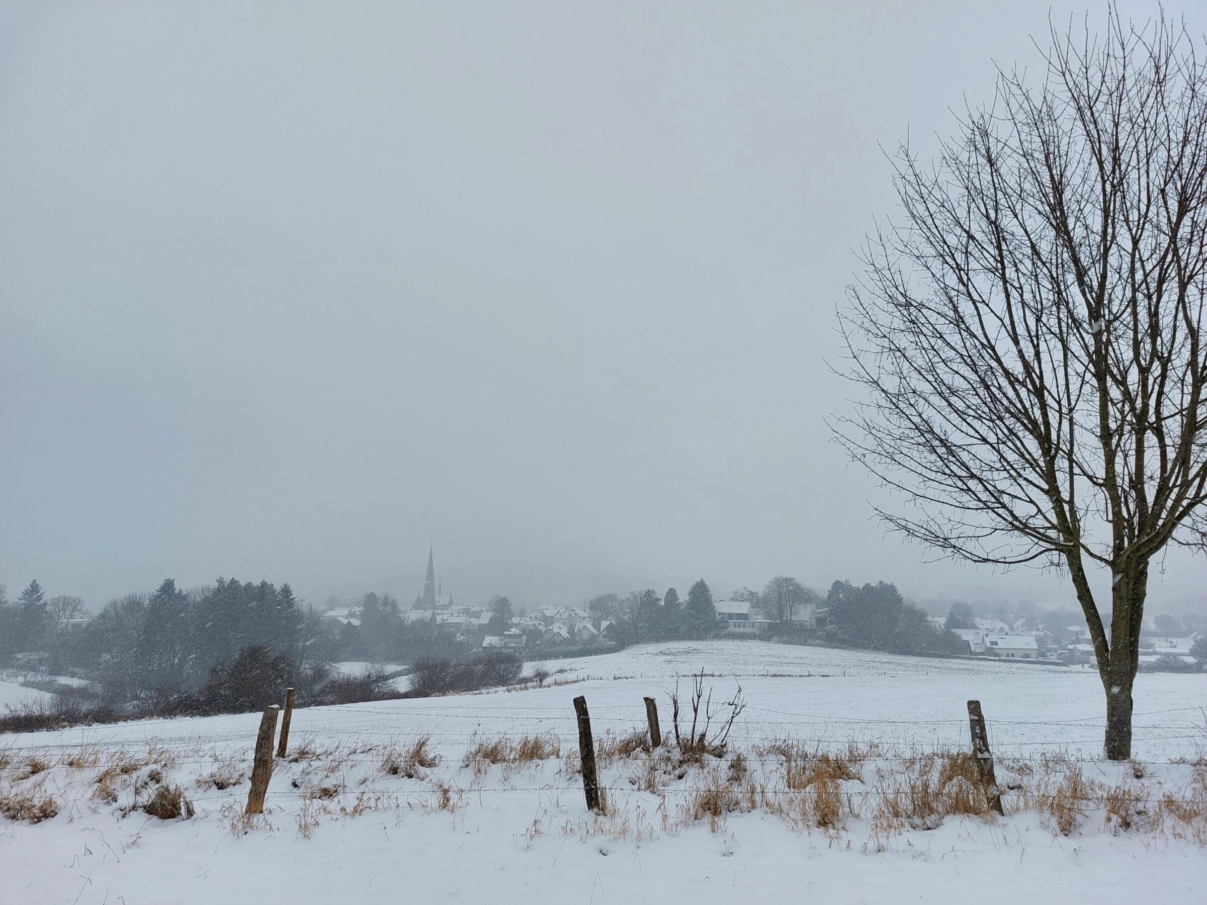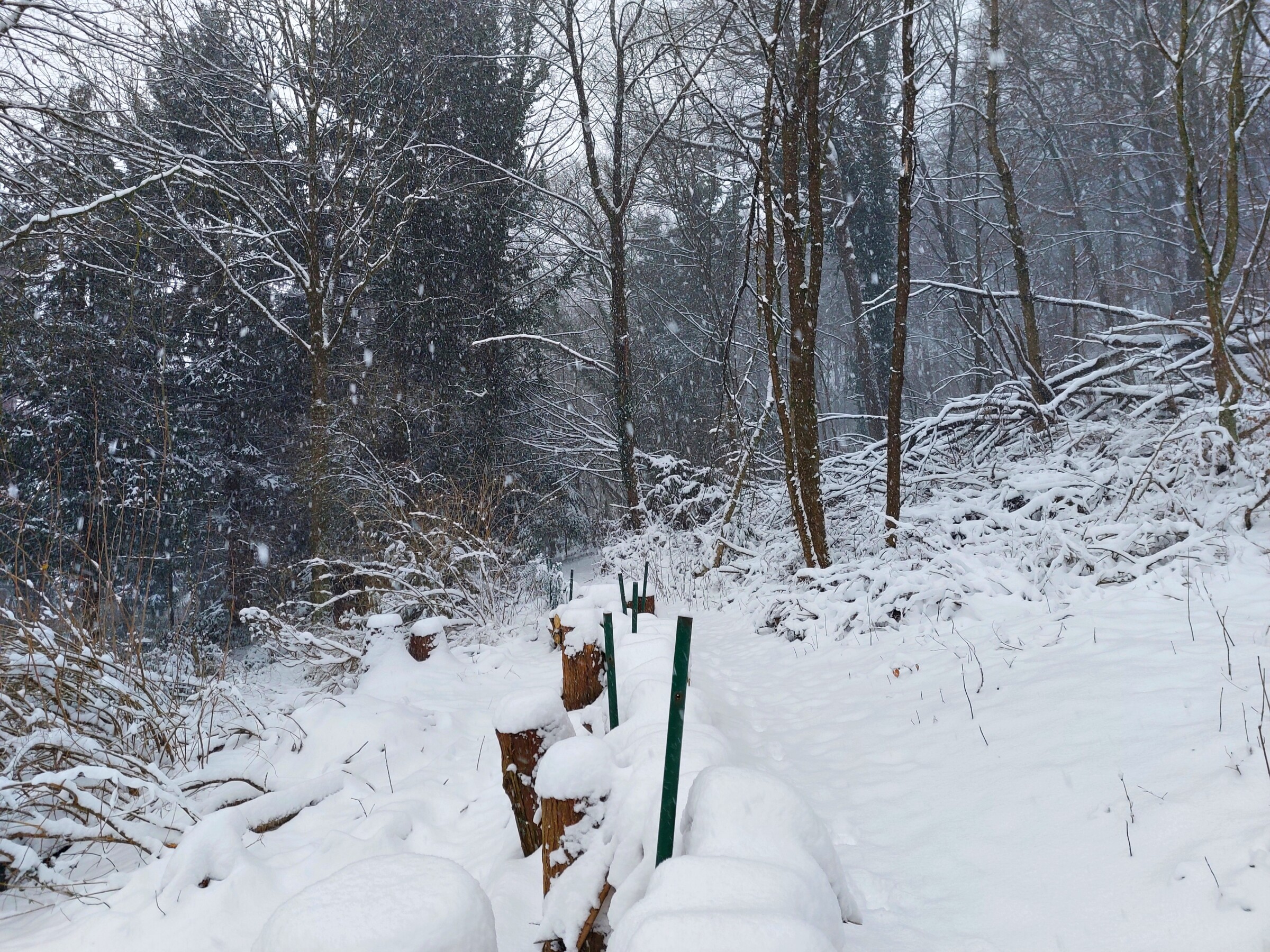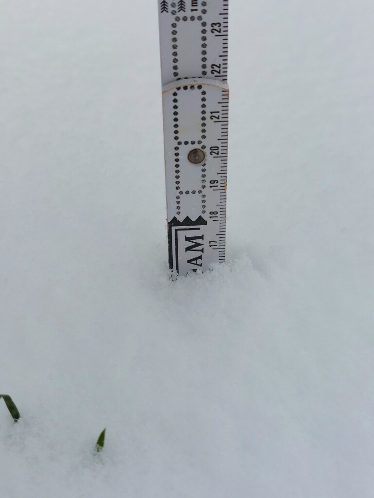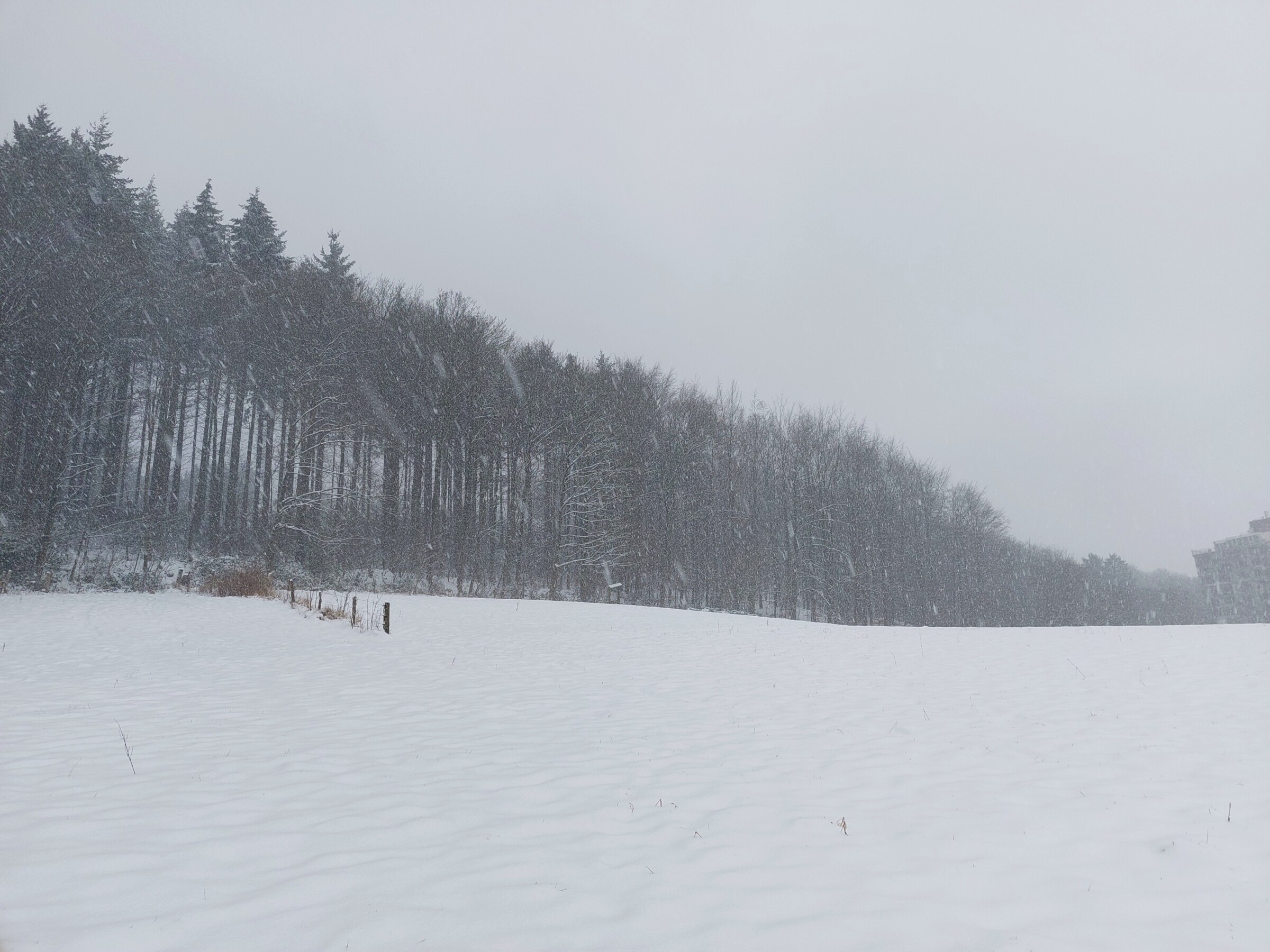 Hierbij dan ook de nodige foto's (op chronologische volgorde) om iedereen mee te laten genieten van de sneeuw in het uiterste zuidoosten van Nederland. In Vaals zelf lag vanmiddag zo'n 3 tot 5 centimeter, vanavond was dat opgelopen naar - ik schat - ongeveer 8 centimeter. Bovenop lag al snel meer sneeuw, waarschijnlijk ook geholpen door restanten van de voorgaande dagen. Op sommige open plekken naast het bos lag toch wel 15 - 20 centimeter.
