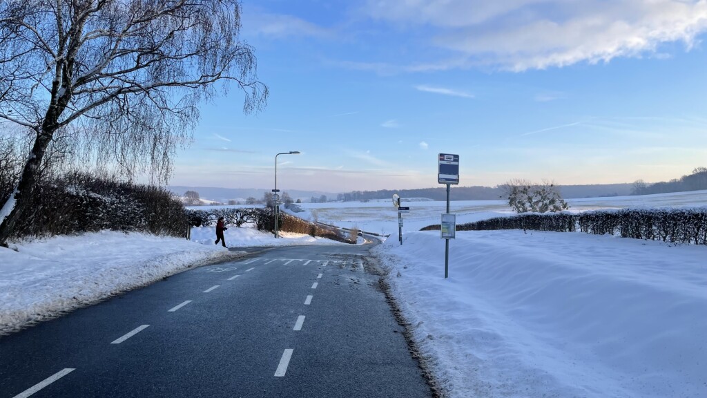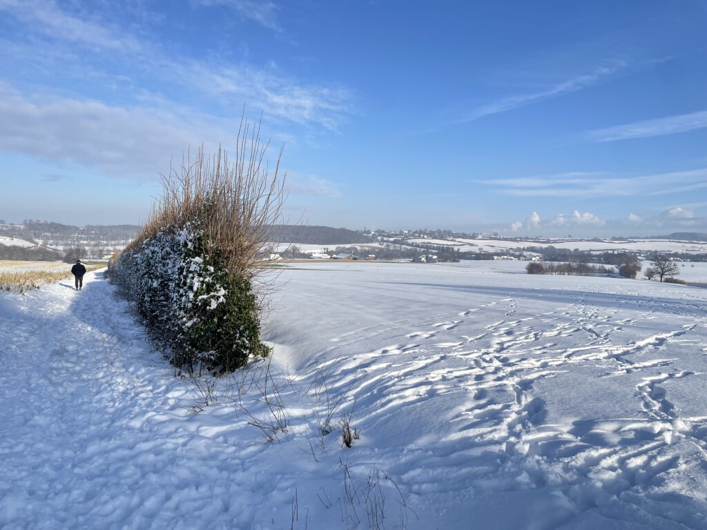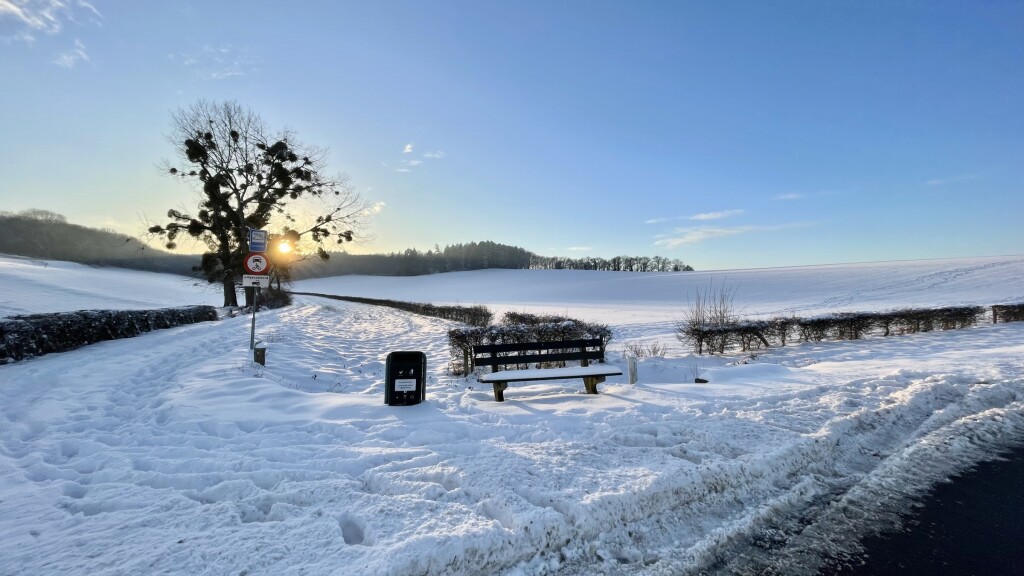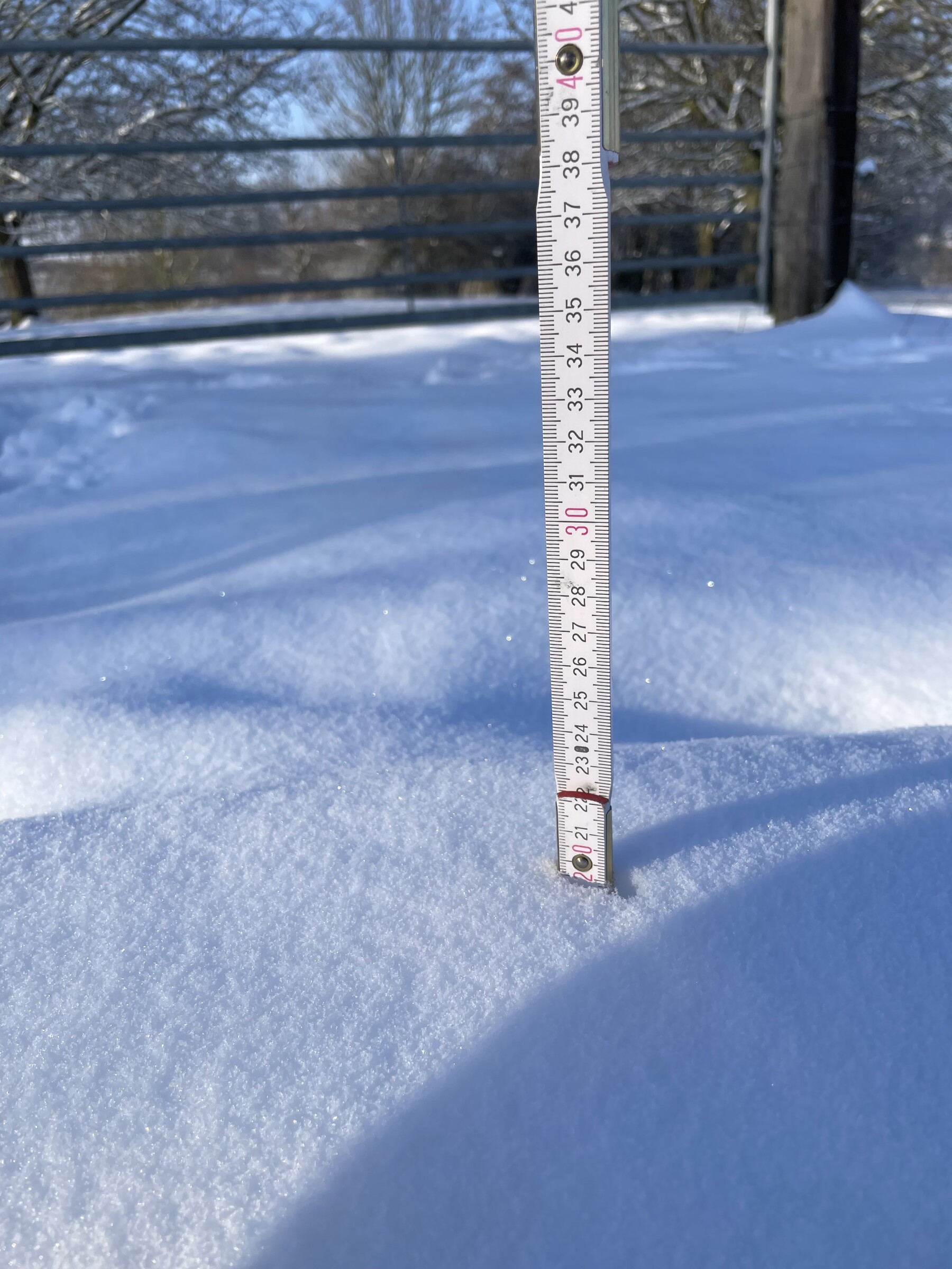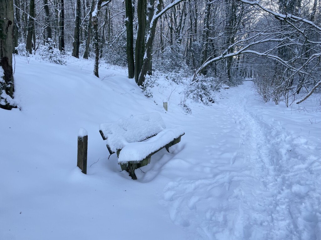 De ‘sneeuwgrens’ ligt duidelijk rond Venlo, in Venlo lag een gebroken dekje van 1/2 cm. Verder naar het zuiden nam de sneeuwhoogte steeds verder toe. Ten noorden van Vijlen ben ik uit de bus gestapt en door het dorp naar het Vijlenerbos gelopen. Ik heb onderweg op meerdere plekken de sneeuwhoogte gemeten en er lag rond de 20 cm