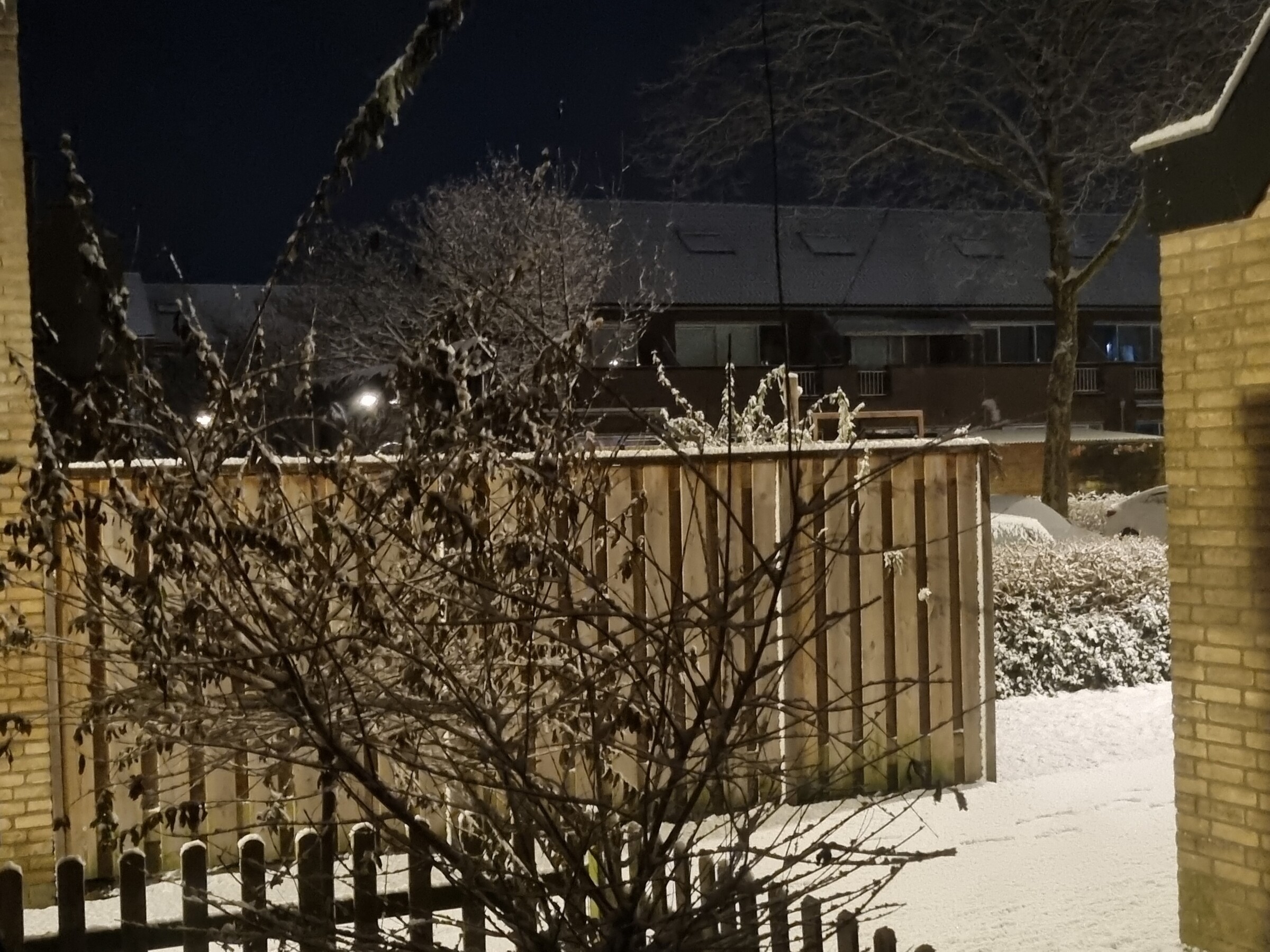 .Oude sneeuw is weer mooi aangevuld. Peuter slaapt nog (kon nu geen goede foto's maken dit is van achter het glas), maar zal later buiten nog een betere fotos maken