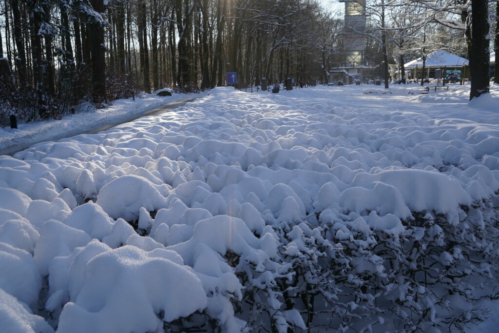 Daar lag minstens 20 cm sneeuw. We hadden het enorme geluk dat de totaal grijs dichtgetrokken lucht bij Sittard totaal opentrok en ten zuiden daarvan was het onbewolkt.