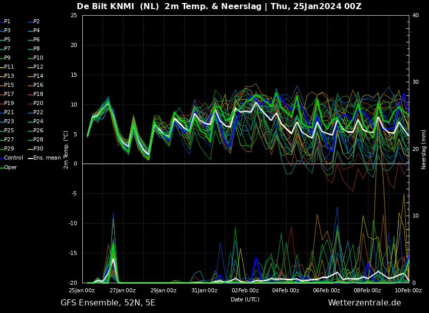DMO Oper GFS2500 - De Bilt: dag 11 en verder | neerslagsom hele run