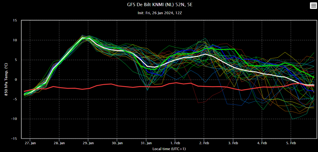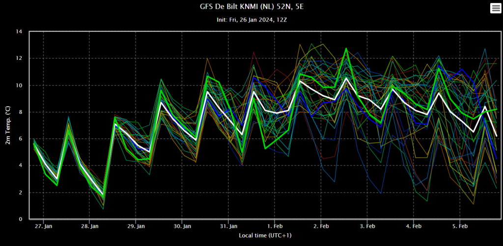 En flink ook. Komt een erg zachte periode aan. In de nachten ruim boven het vriespunt en overdag geregeld in de dubbele cijfers.