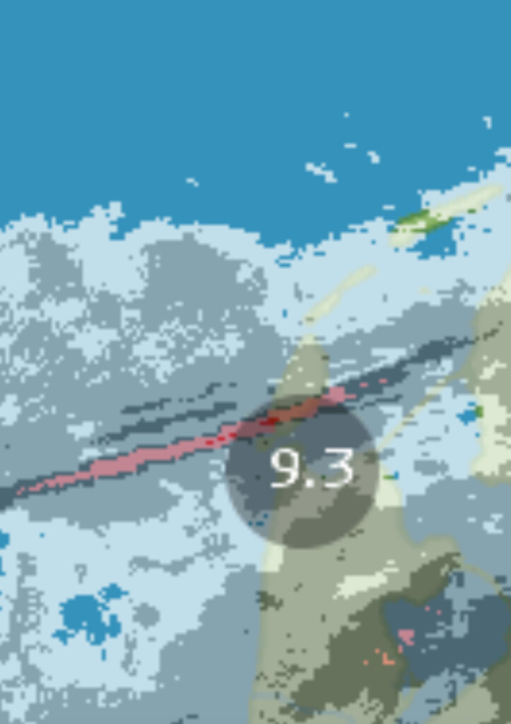 Op buienradar 24 uur vooruit ook zichtbaar.