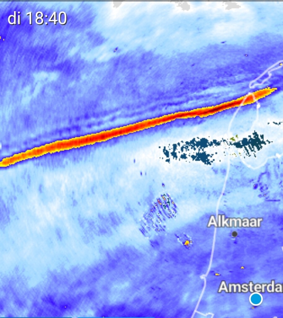 Op buienradar 24 uur vooruit ook zichtbaar.
