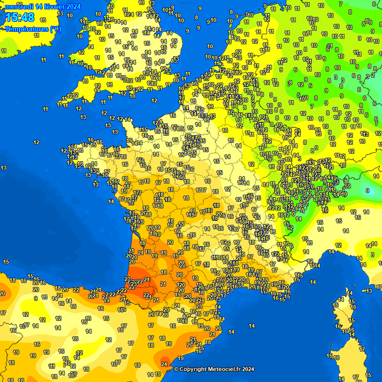 Dit soort temperatuurkaarten zijn - heb ik het idee - steeds normaler geworden in West-Europa in het winterseizoen.